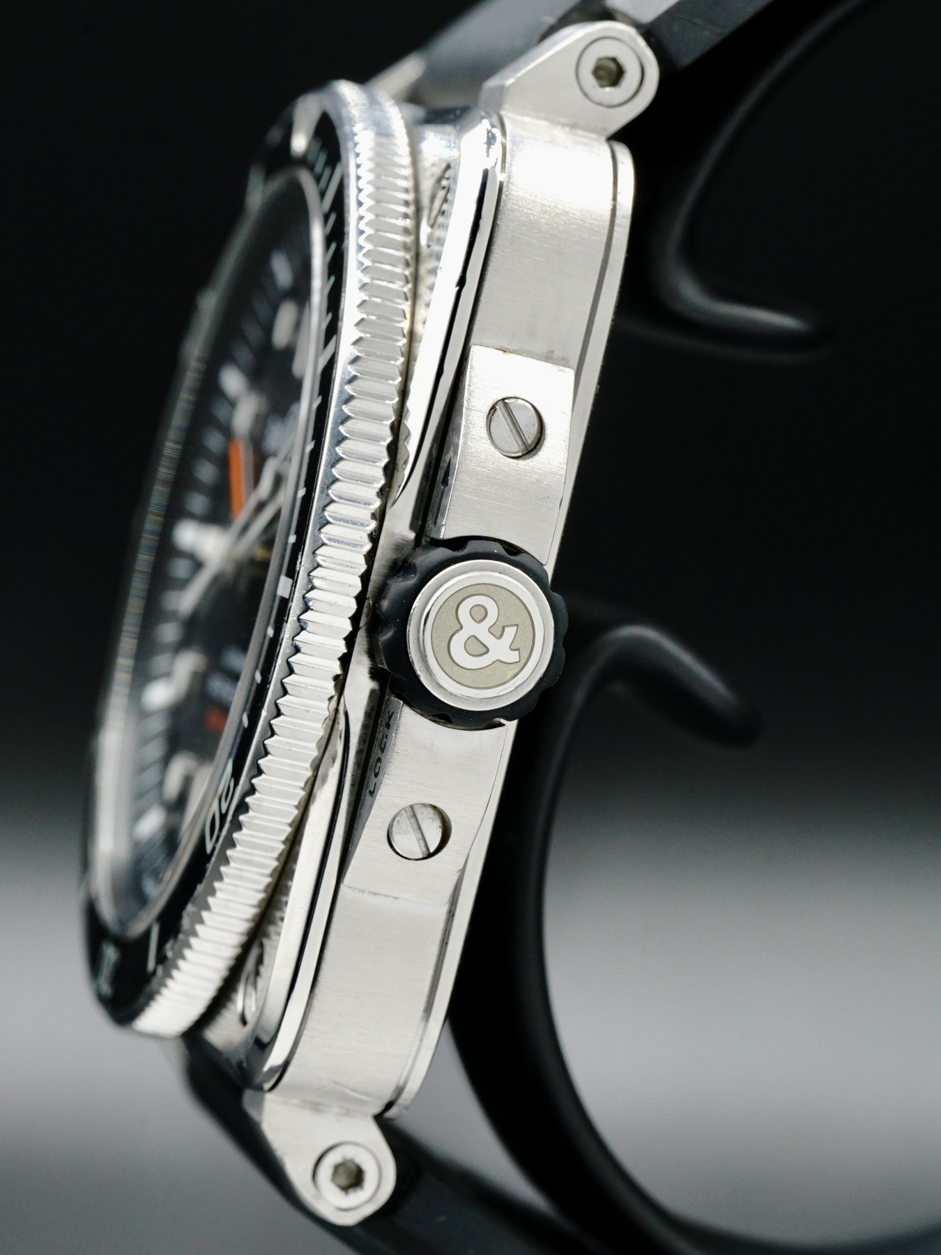 This Bell & Ross BR 03-92 Diver features a 42mm stainless steel case with a solid case back on a black rubber strap. This watch also sports a black dial with luminous hands and index dial markers covered by scratch resistant sapphire crystal.