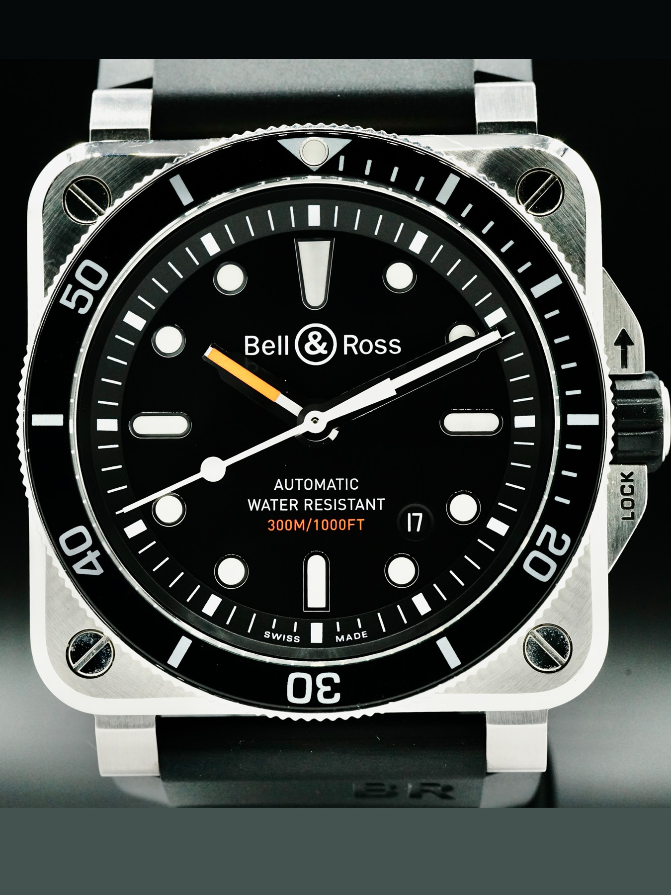 Mechanical Automatic movement powered by Bell & Ross Caliber BR-CAL.302. Water resistant up to 300 meters.