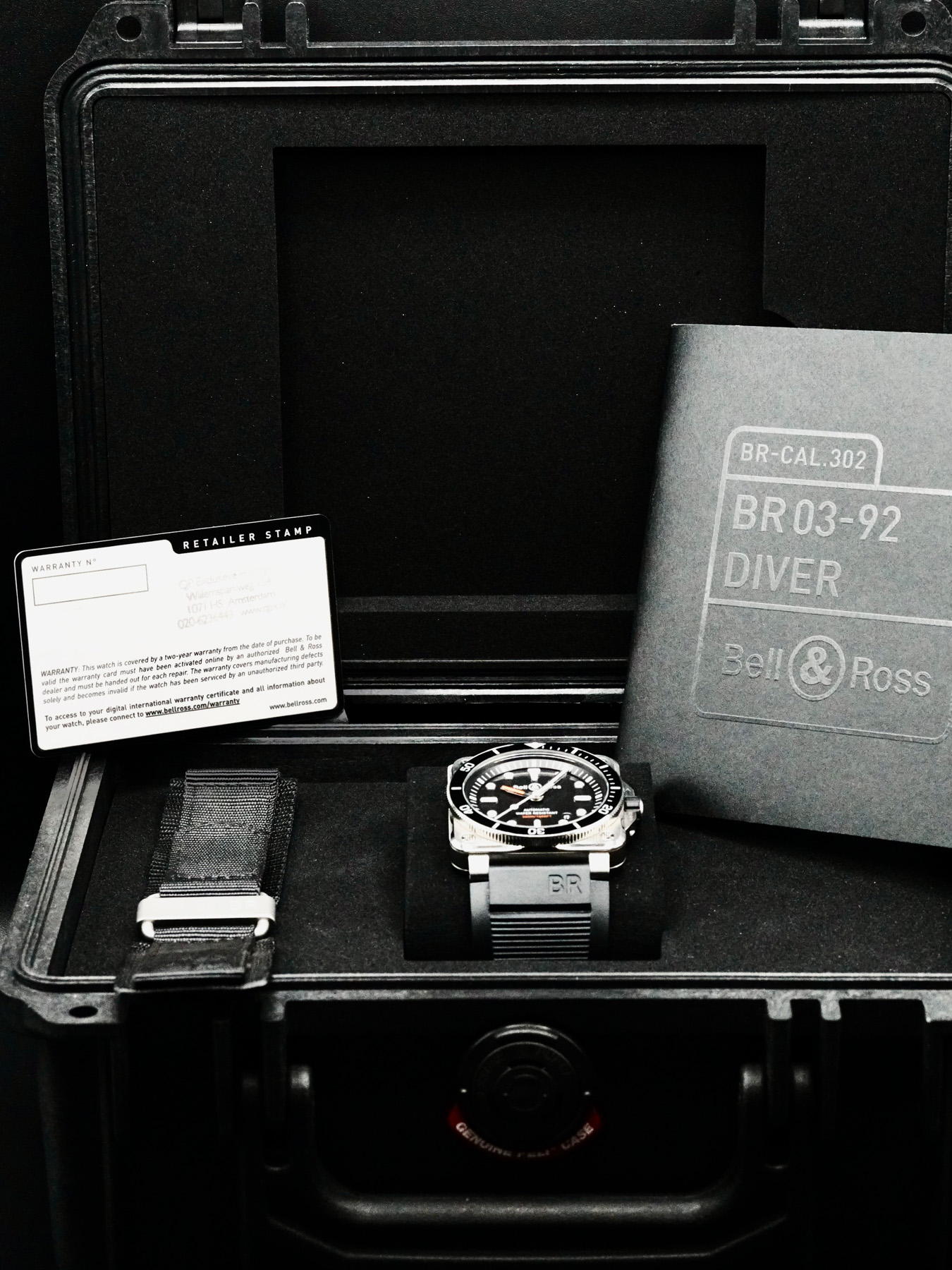 This Bell & Ross BR 03-92 Diver BR0392-D-BL-ST/SRB is in EXCELLENT condition. This watch includes its original box, instruction manual, and warranty card not dated. Extra black fabric strap. This watch has been fully authenticated and certified by Exquisite Timepieces.