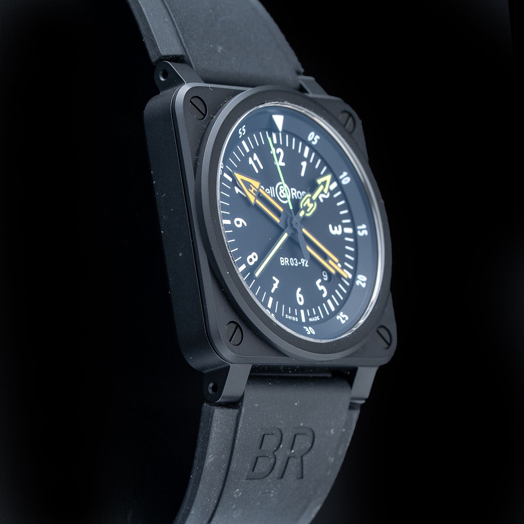 This Bell & Ross BR-03 Radiocompass is in GREAT condition. This watch includes its Original Box, Original Papers and Warranty Card Dated 2022. This watch has been fully authenticated and certified by Exquisite Timepieces.Please note, the photos shown are of the actual watch you will receive.