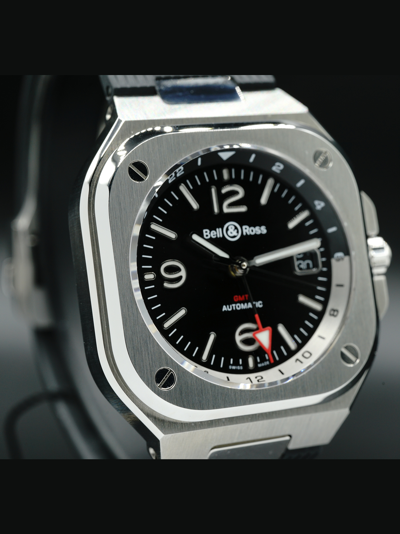 This Bell & Ross BR 05 GMT is in EXCELLENT condition. This watch offers a more urban interpretation of travel and time. The engine is set to two time zones. The BR 05 GMT is designed to travel and accompany the transition between different urban realities. It is the ultimate globe-trotter's tool.