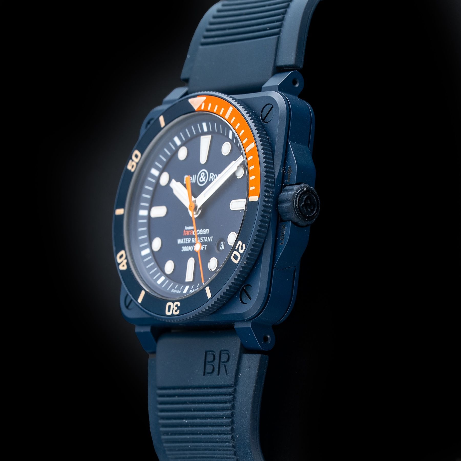 This Bell & Ross BR03-92-D-C-10082 Tara Blue Ceramic is in GREAT condition. This watch includes its Original Box, Original Papers. This watch has been fully authenticated and certified by Exquisite Timepieces.Please note, the photos shown are of the actual watch you will receive.