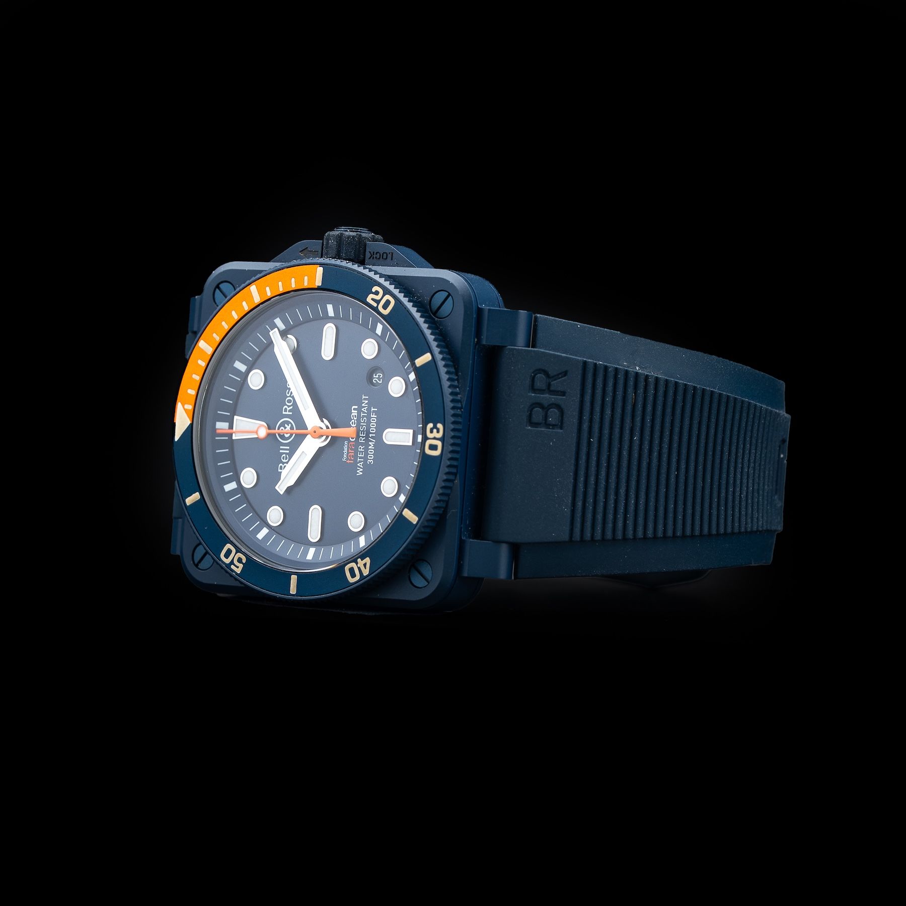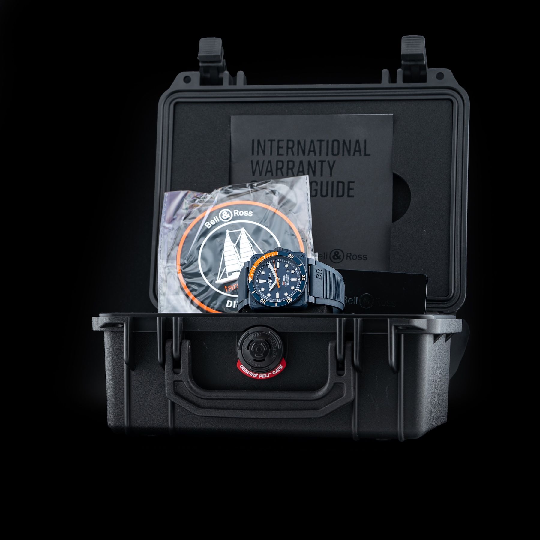 This Bell & Ross BR0392-D-TR-CE/SRB Diver Tara is in GREAT condition. This watch includes its Original Box, Original Papers. This watch has been fully authenticated and certified by Exquisite Timepieces. Please note, the photos shown are of the actual watch you will receive.
