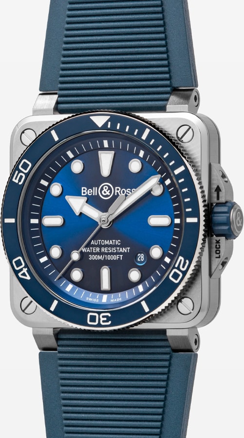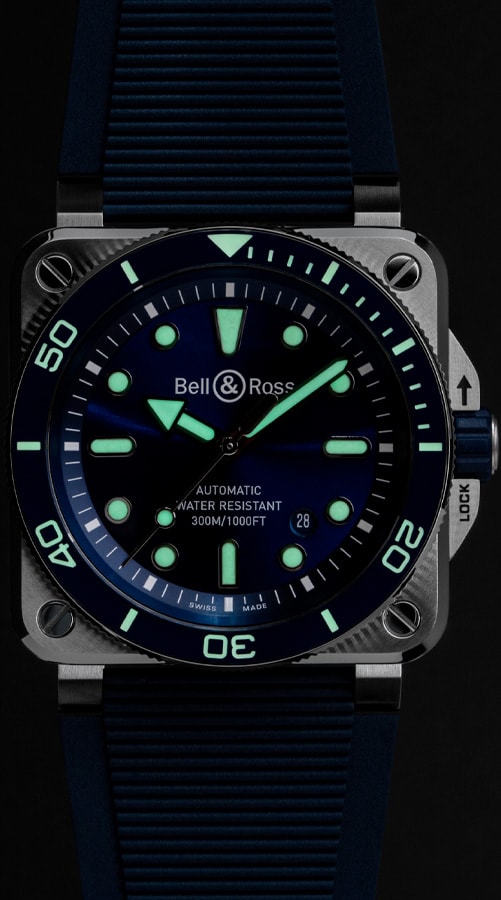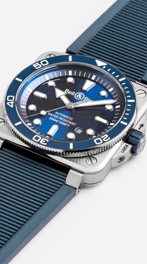 The bezels of the new BR 03 Diver models feature a ceramic insert for greater resistance and durability, and their movement has been modified to extend the power reserve to 54 hours. A new typeface and new hands make the watch easier to read, while the new strap will fit all wrists.