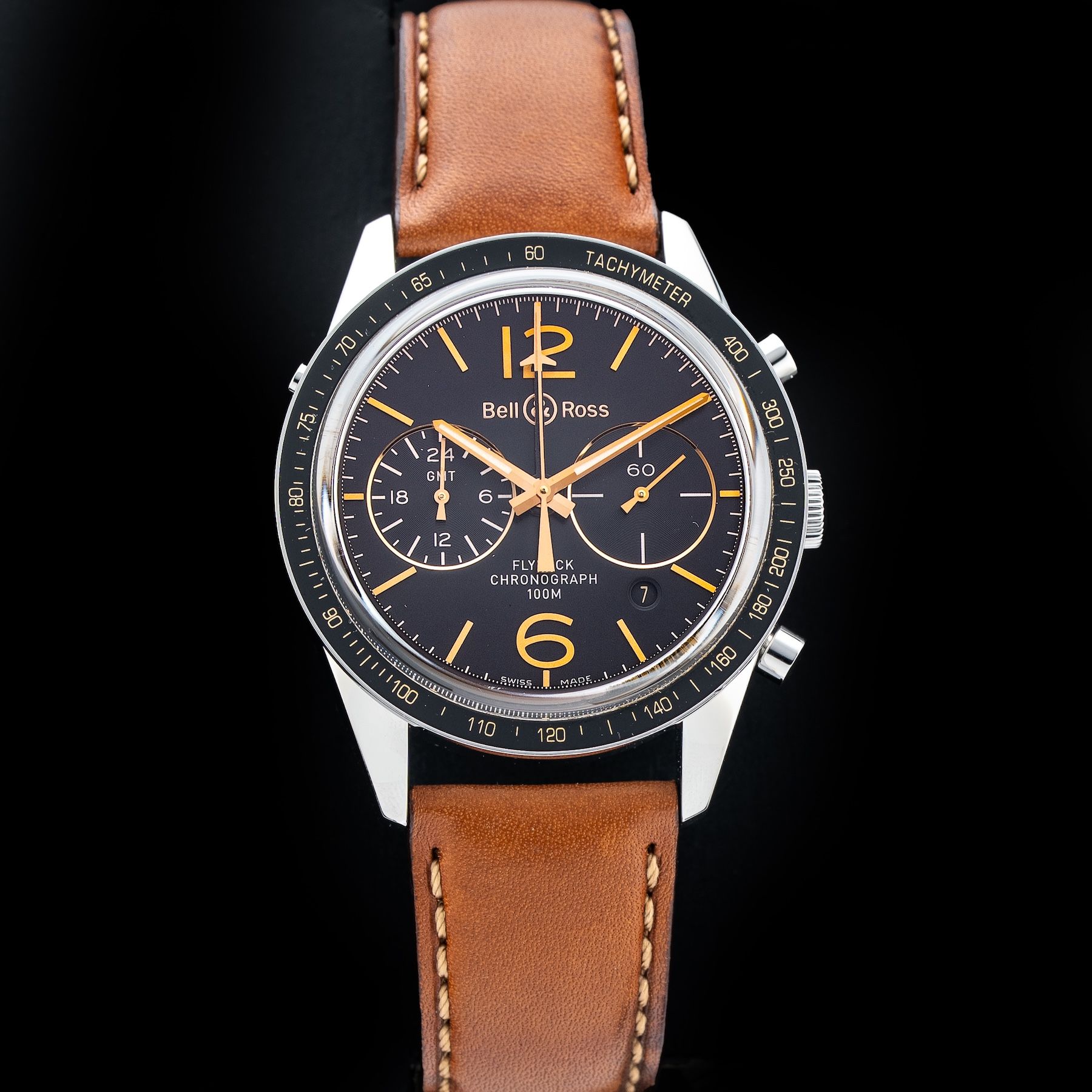 This Bell & Ross Sport Heritage GMT Flyback BRV126-FLY-GMT/SCA is in GREAT condition it has boxes and papers, warranty card dated 2015.This watch has been fully authenticated and certified by Exquisite Timepieces.Please note, the photos shown are of the actual watch you will receive.