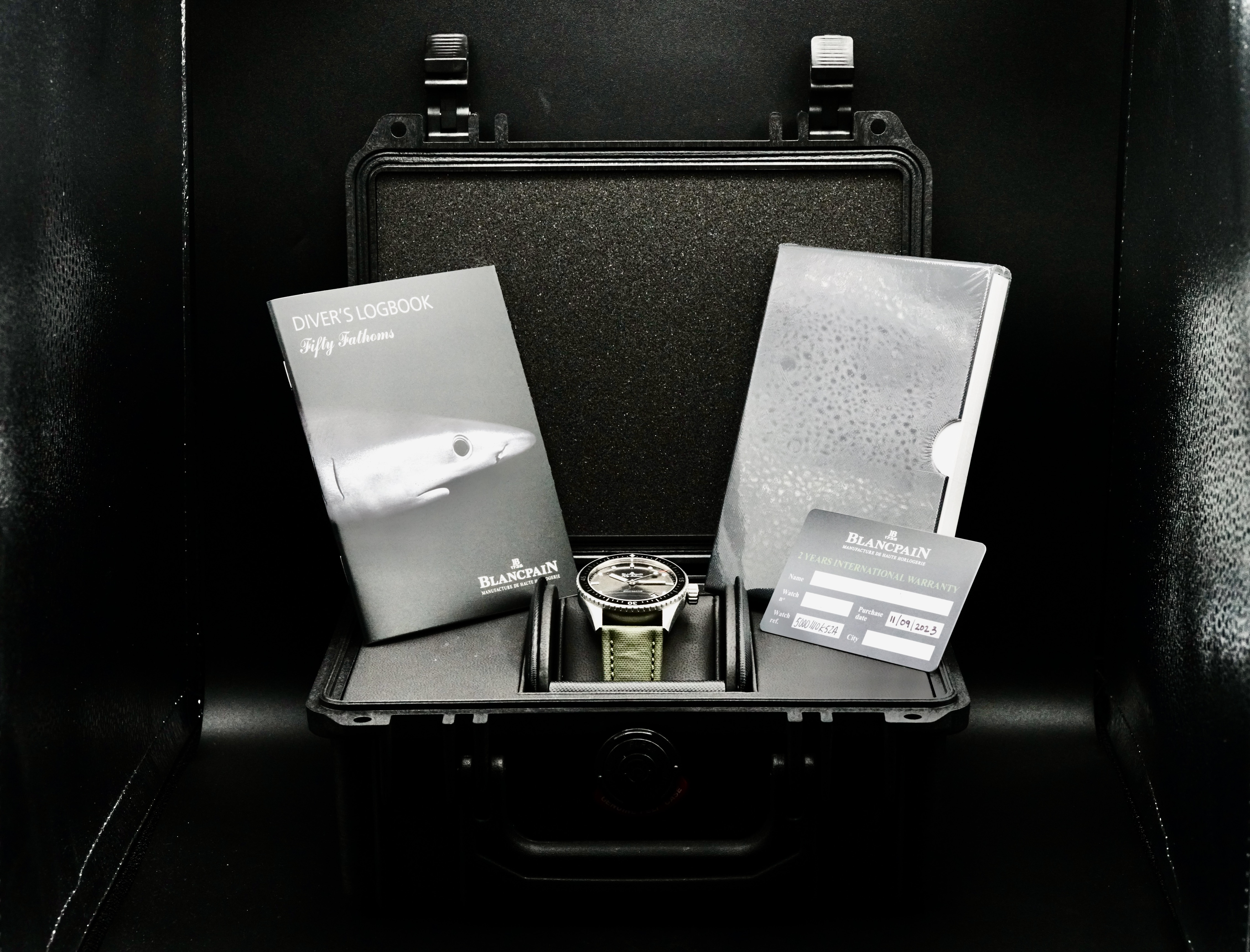 This Blancpain 5000 1110 K5ZA Fifty Fathoms Bathyscaphe is in EXCELLENT condition. This watch includes original box, papers and warranty card dated 2023. This watch has been fully authenticated and certified by Exquisite Timepieces.