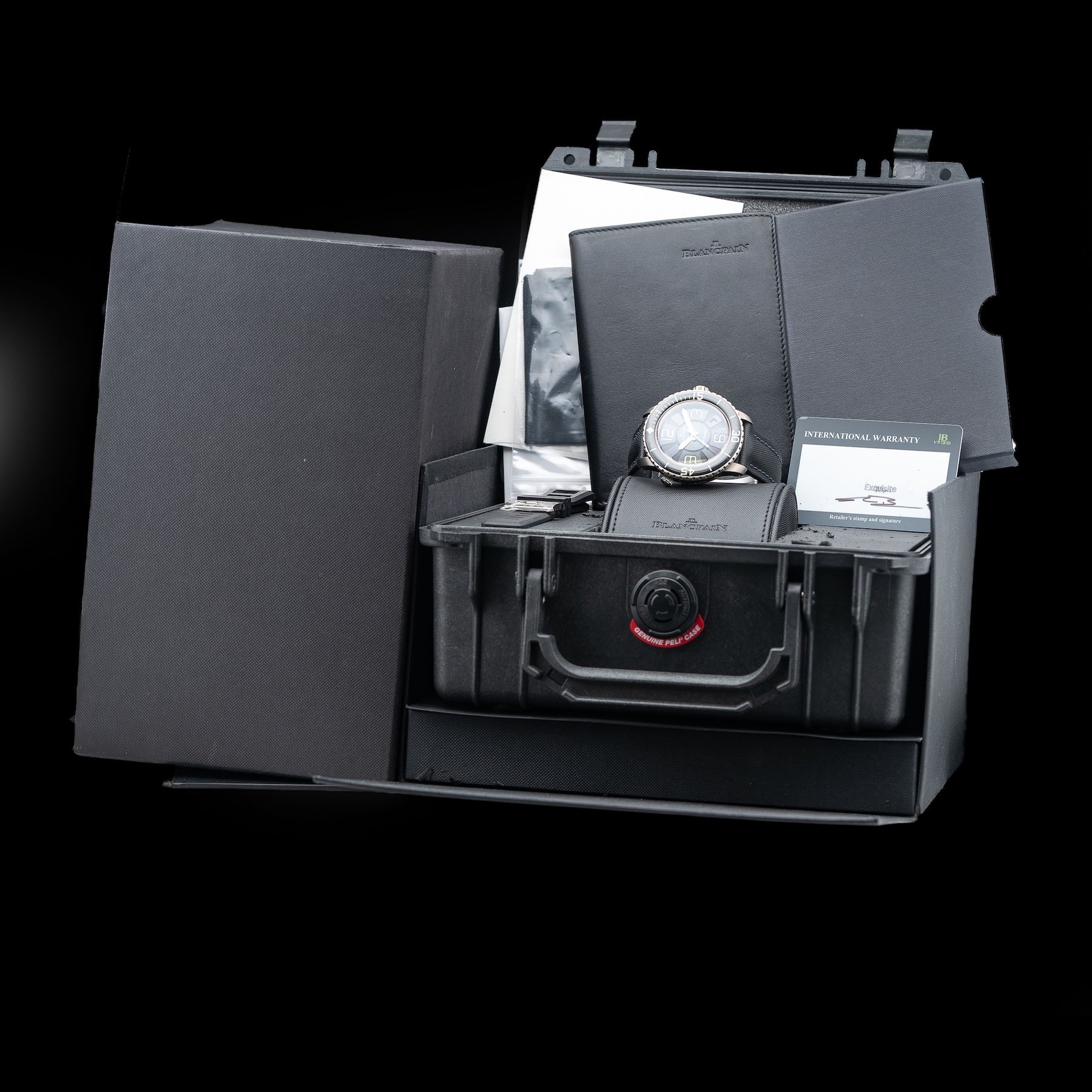 This watch features a 48mm titanium case on sail canvas strap. This watch also sports a black dial. Powered by an automatic movement. Water resistance up to 100 meters.
