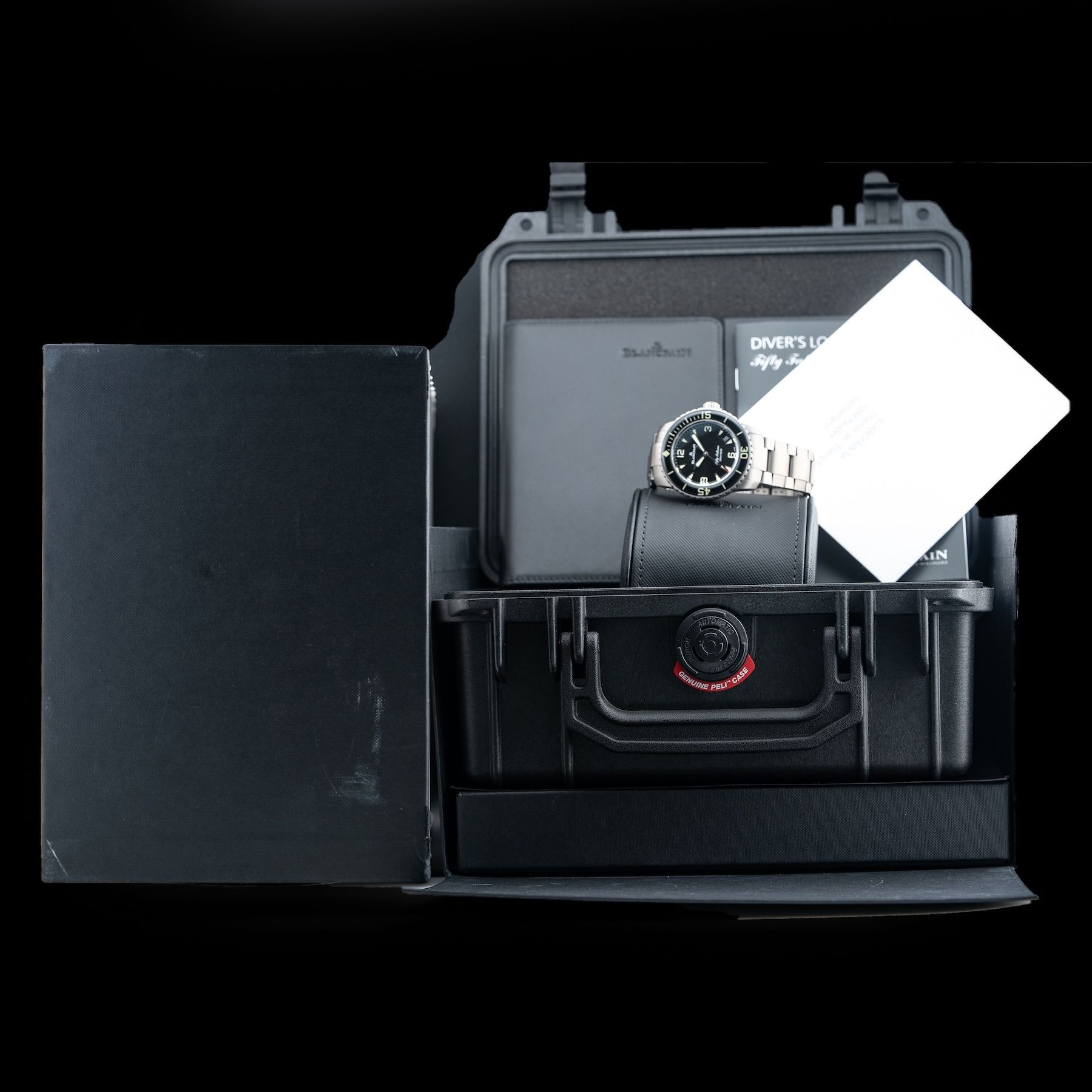 This Blancpain 5010 12B30 98S Fifty Fathoms Automatic 42mm Black Dial is in GREAT condition, it has boxes, papers. Warranty card dated 7/28/24. This watch has been fully authenticated and certified by Exquisite Timepieces. Please note, the photos shown are of the actual watch you will receive.