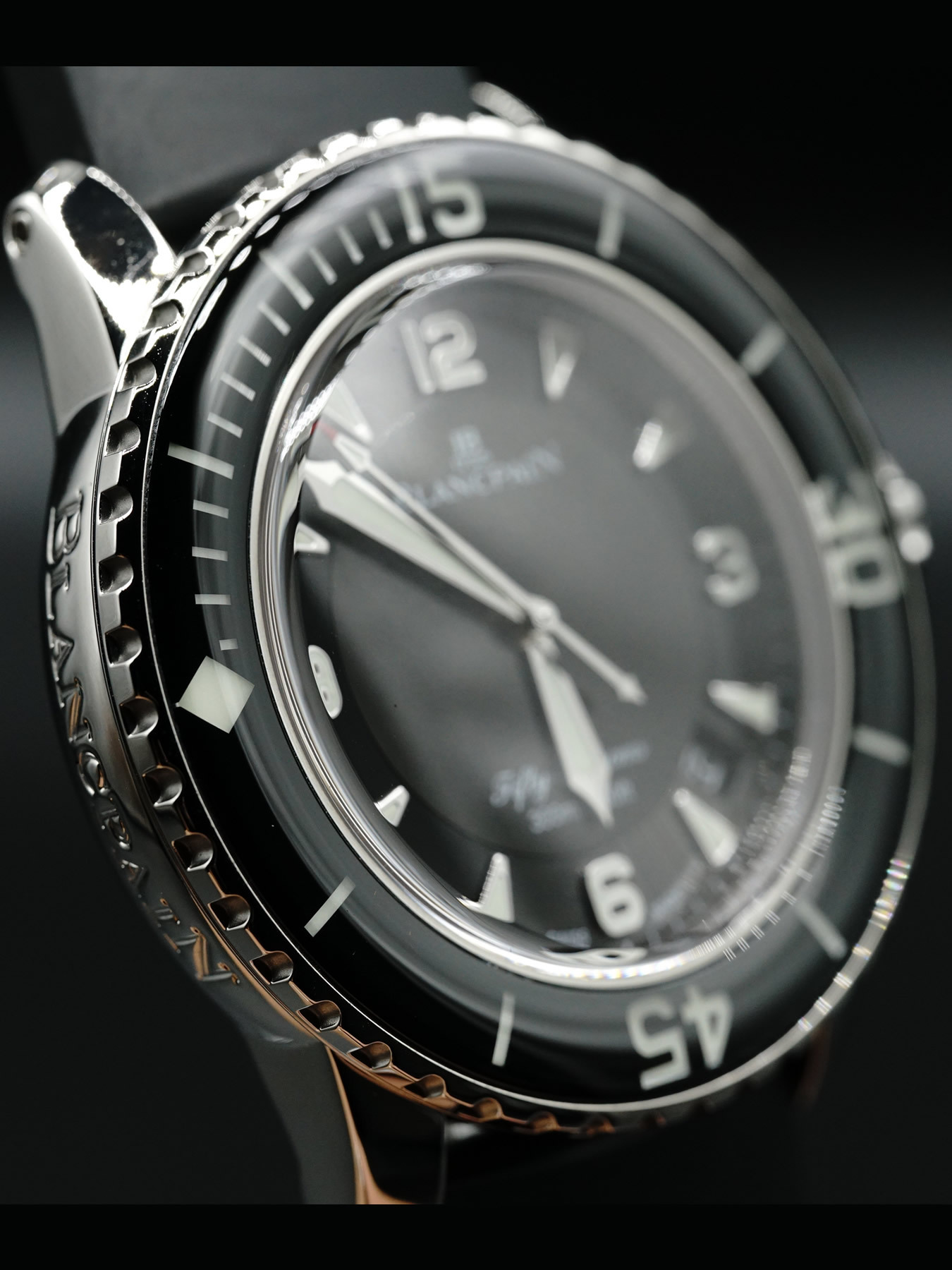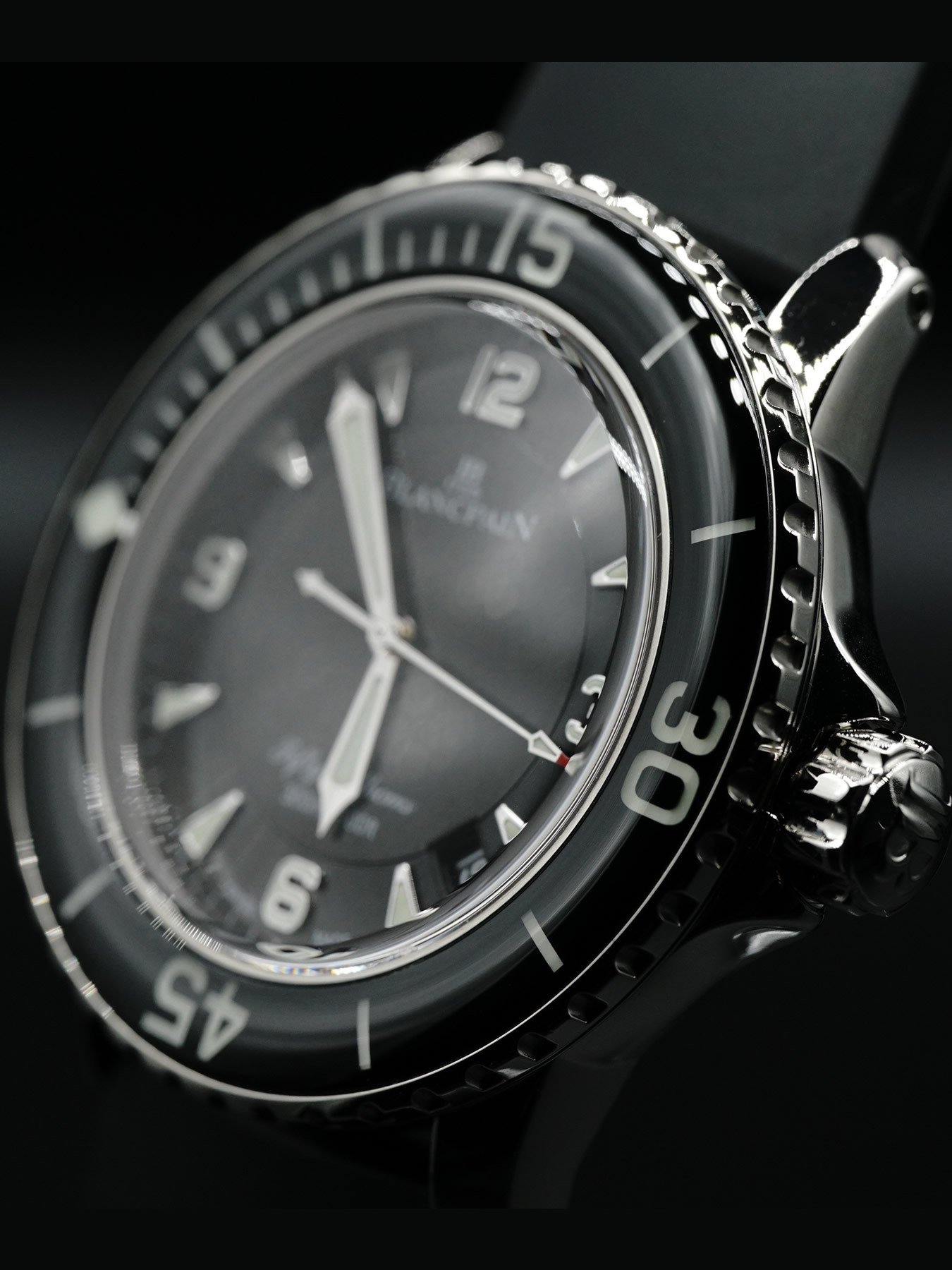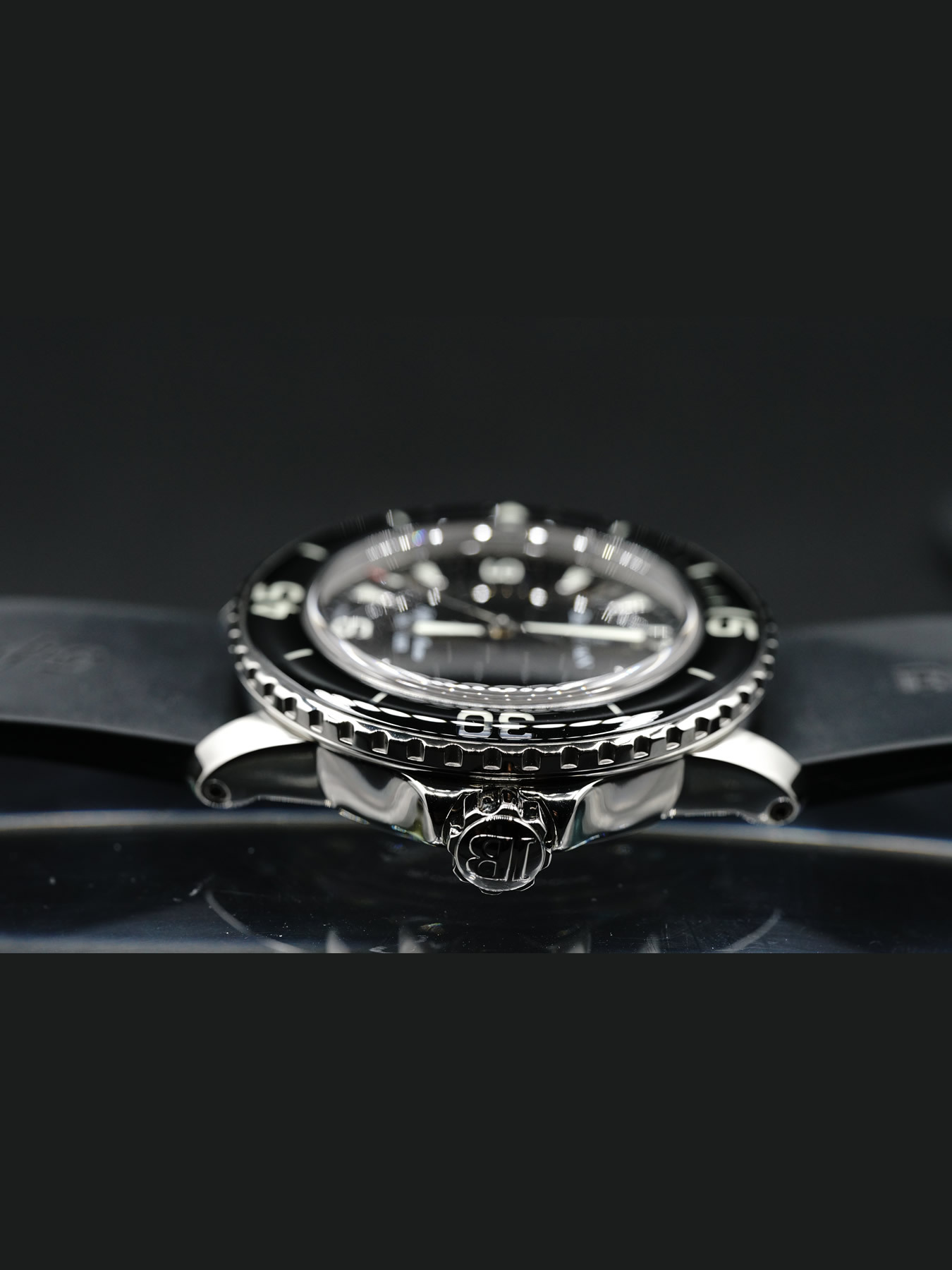 - This timepiece features a 45mm steel case paired with a high quality steel bracelet. It showcases a distinctive black dial and is powered by a precise automatic winding movement. The watch is designed with a water resistance of up to 300m.