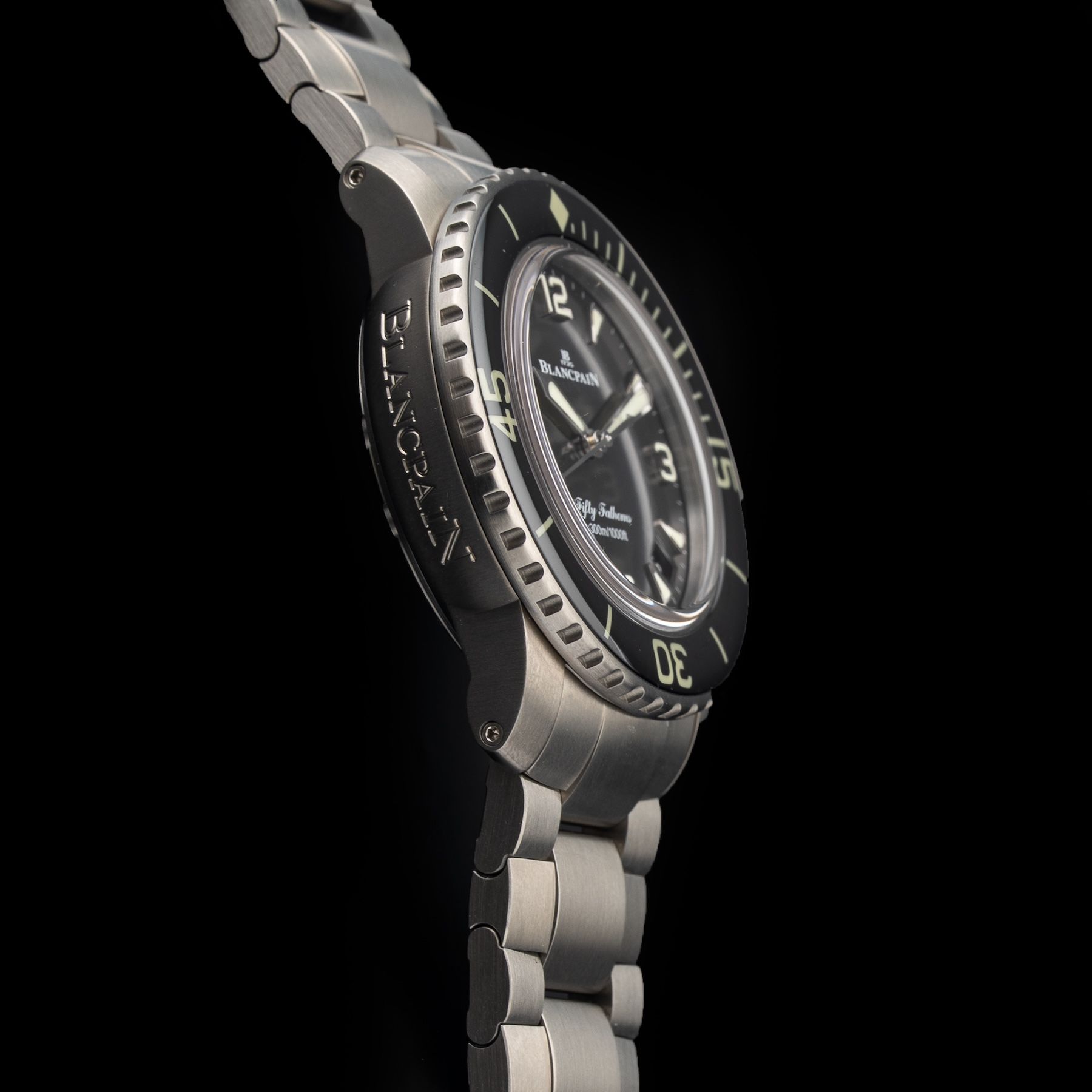 This Blancpain Fifty Fathoms Automatic 42mm Black Dial 5010 12B30 98S is in GREAT condition. This watch includes its Original Box, Original Papers. This watch has been fully authenticated and certified by Exquisite Timepieces. Please note, the photos shown are of the actual watch you will receive.