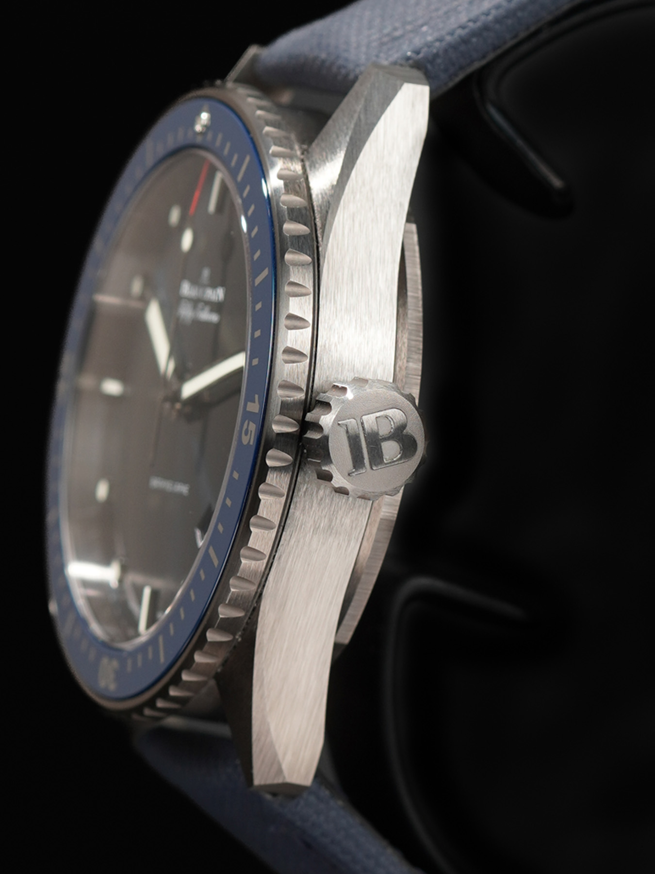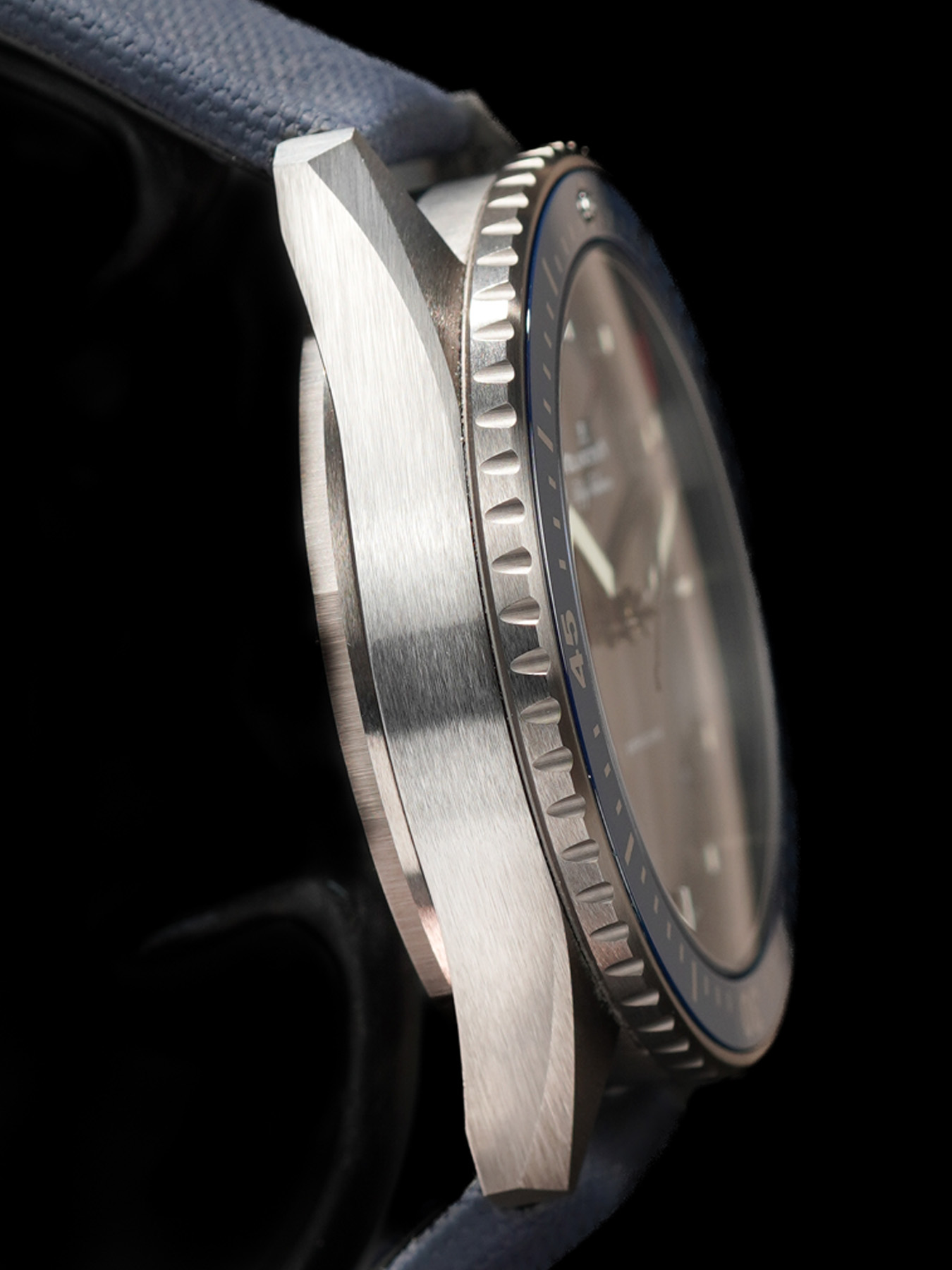 - This timepiece features a 43.5mm ceramic case paired with a high quality fabric strap. It showcases a distinctive blue dial and is powered by a precise automatic winding movement. The watch is designed with a water resistance of up to 300m.