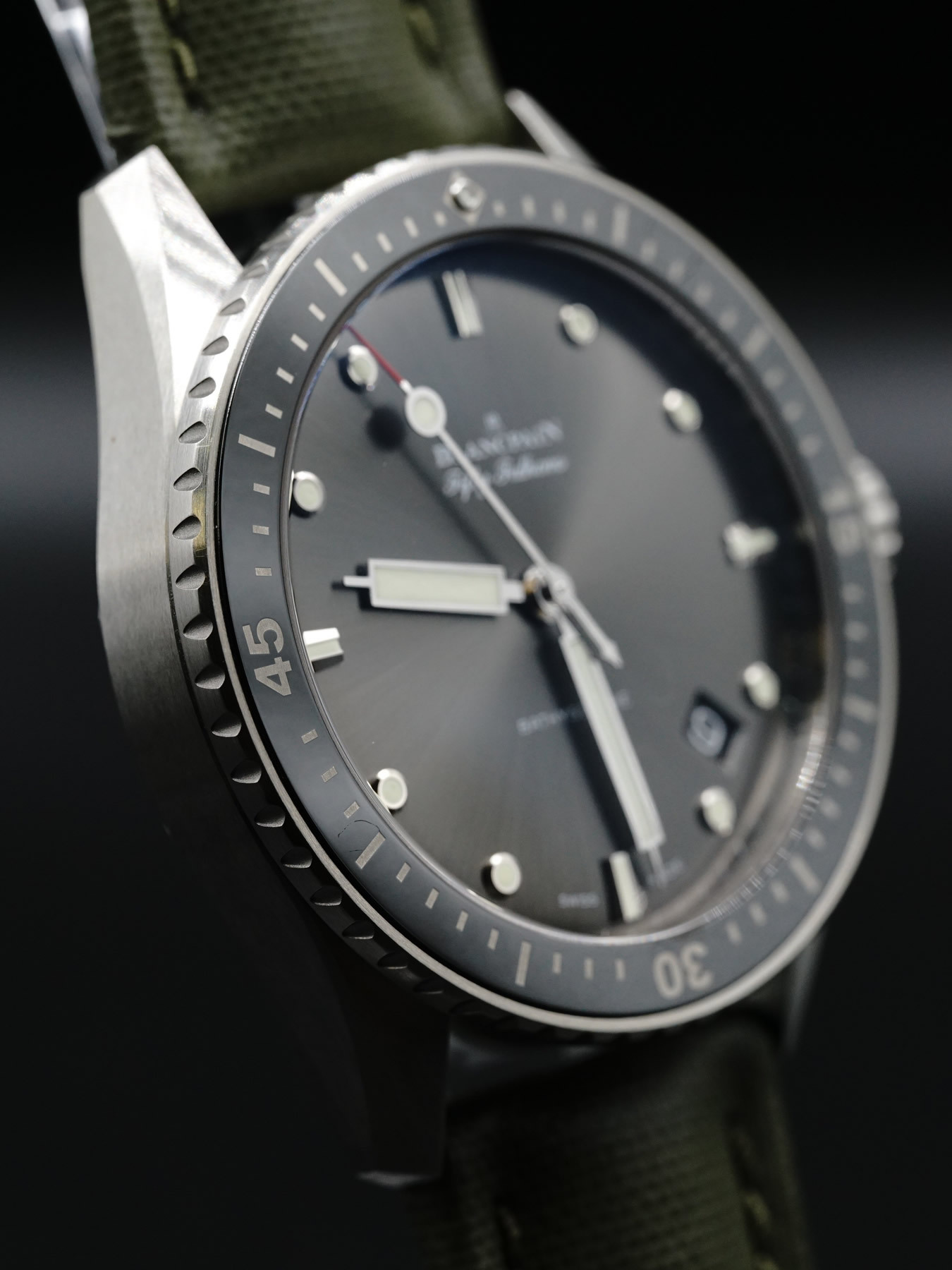 This Blancpain Fifty Fathoms Bathyscaphe 5000-1110-B52A is in EXCELLENT condition. This watch includes its original box and original papers.