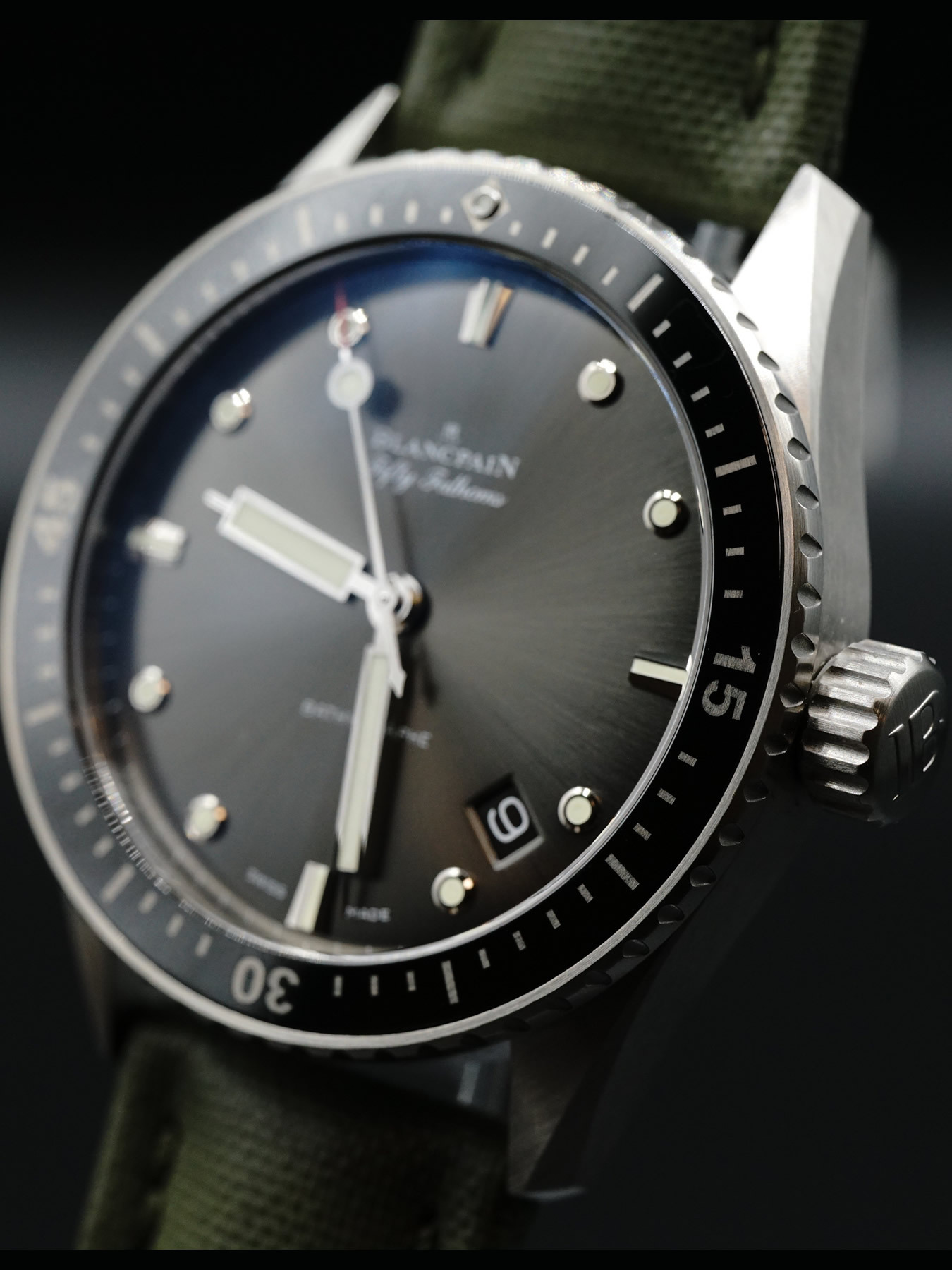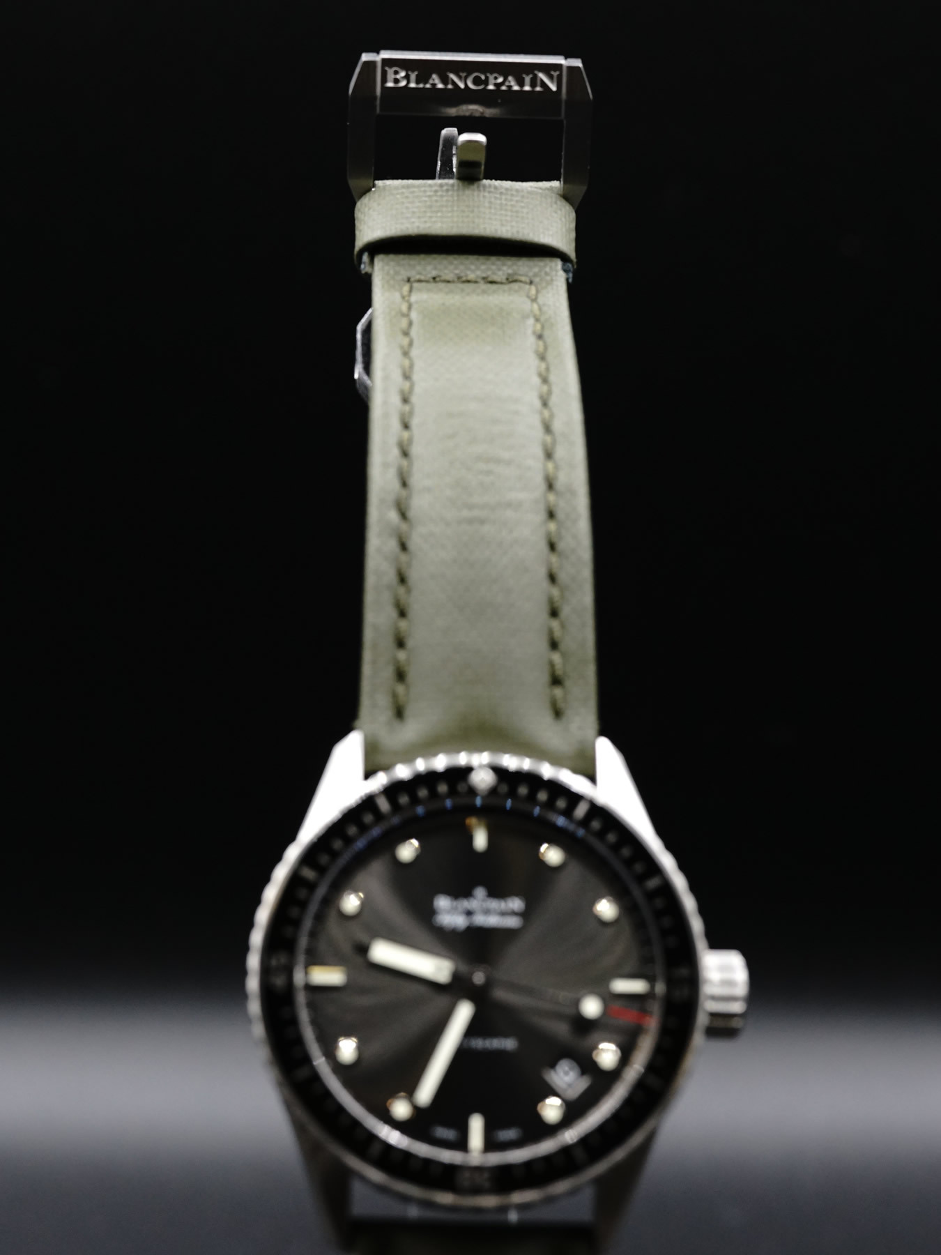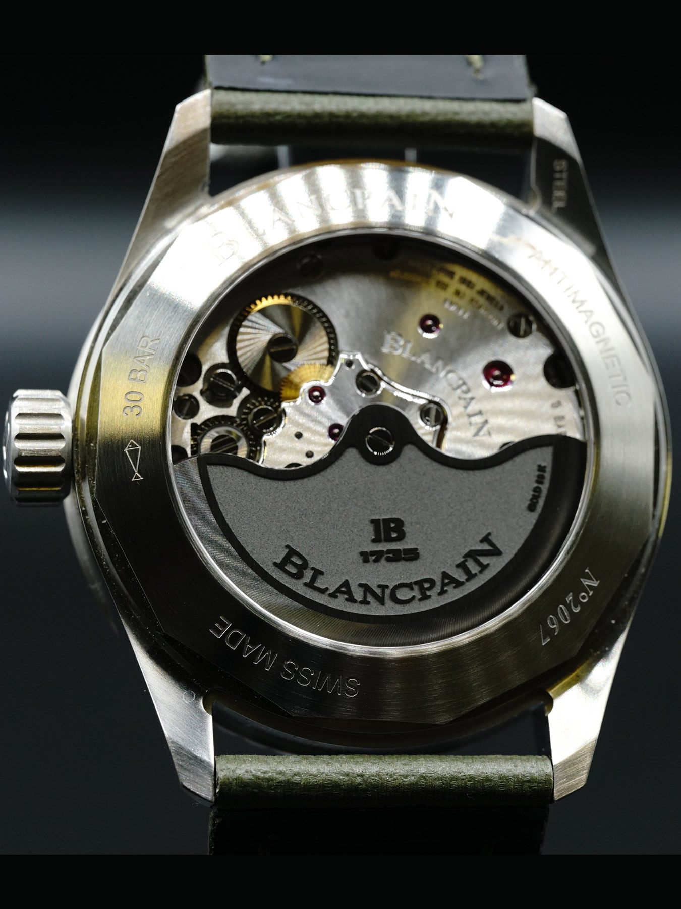 Powered by Blancpain Caliber 1315 for a power reserve of approximately 120 hours. Water resistance up to 300 meters.
