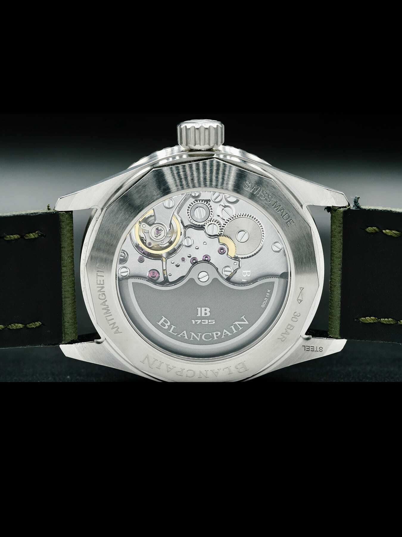 Powered by Blancpain Caliber 1315 for a power reserve of approximately 120 hours. Water resistance up to 300 meters.