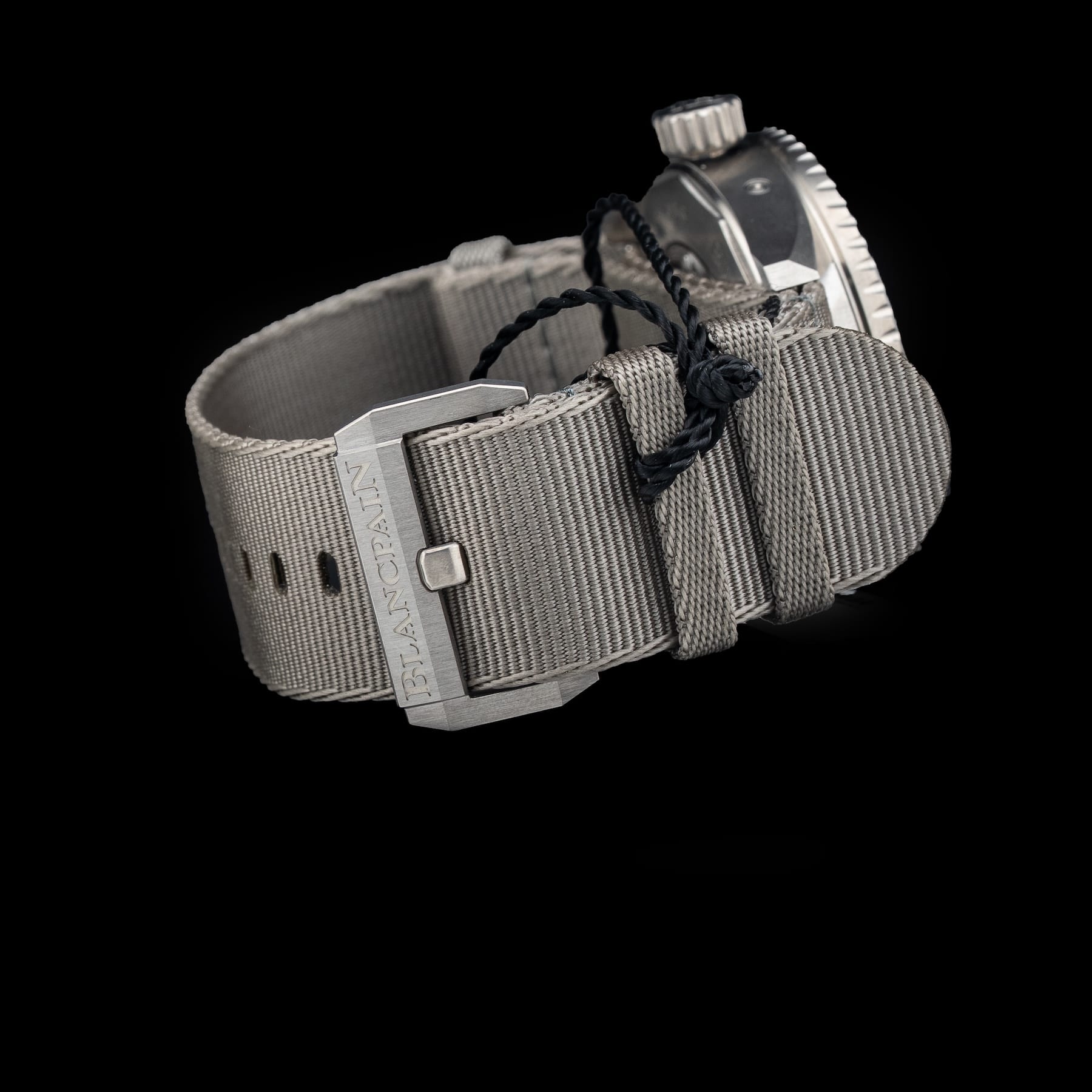 - This timepiece features a 43mm titanium case paired with a high quality nato strap. It showcases a distinctive grey dial and is powered by a precise automatic winding movement. The watch is designed with a water resistance of up to 300m.