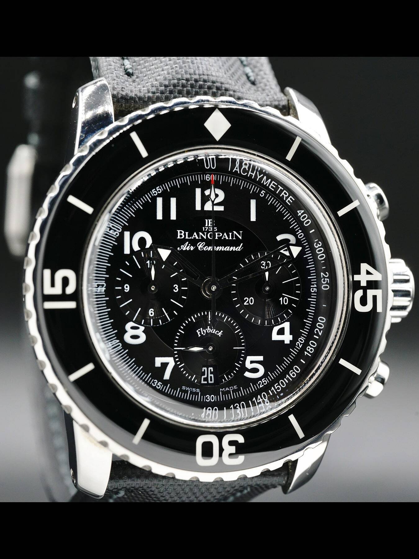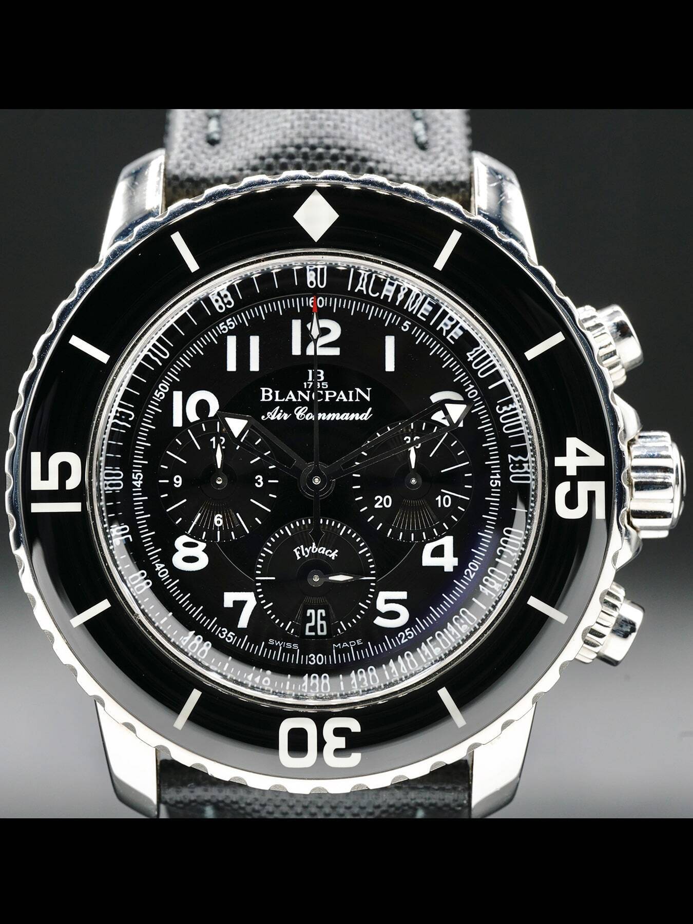 This Blancpain Fifty Fathoms Air Command Flyback 5885-F113-052 is in EXCELLENT condition. This watch includes its original box, user manual, technical & service booklet, and international warranty dated for September 2010.