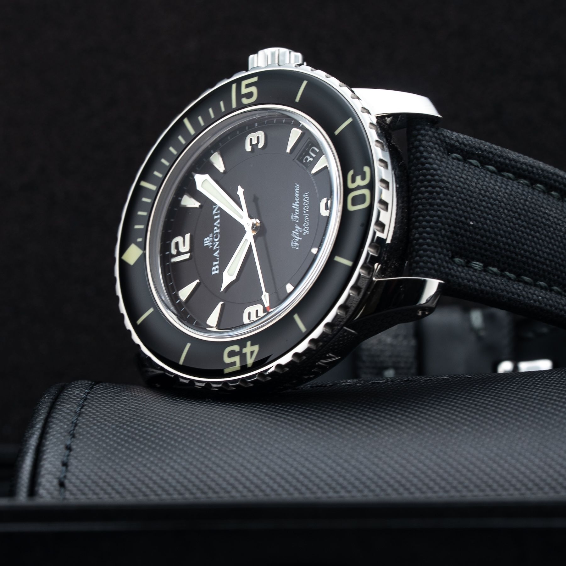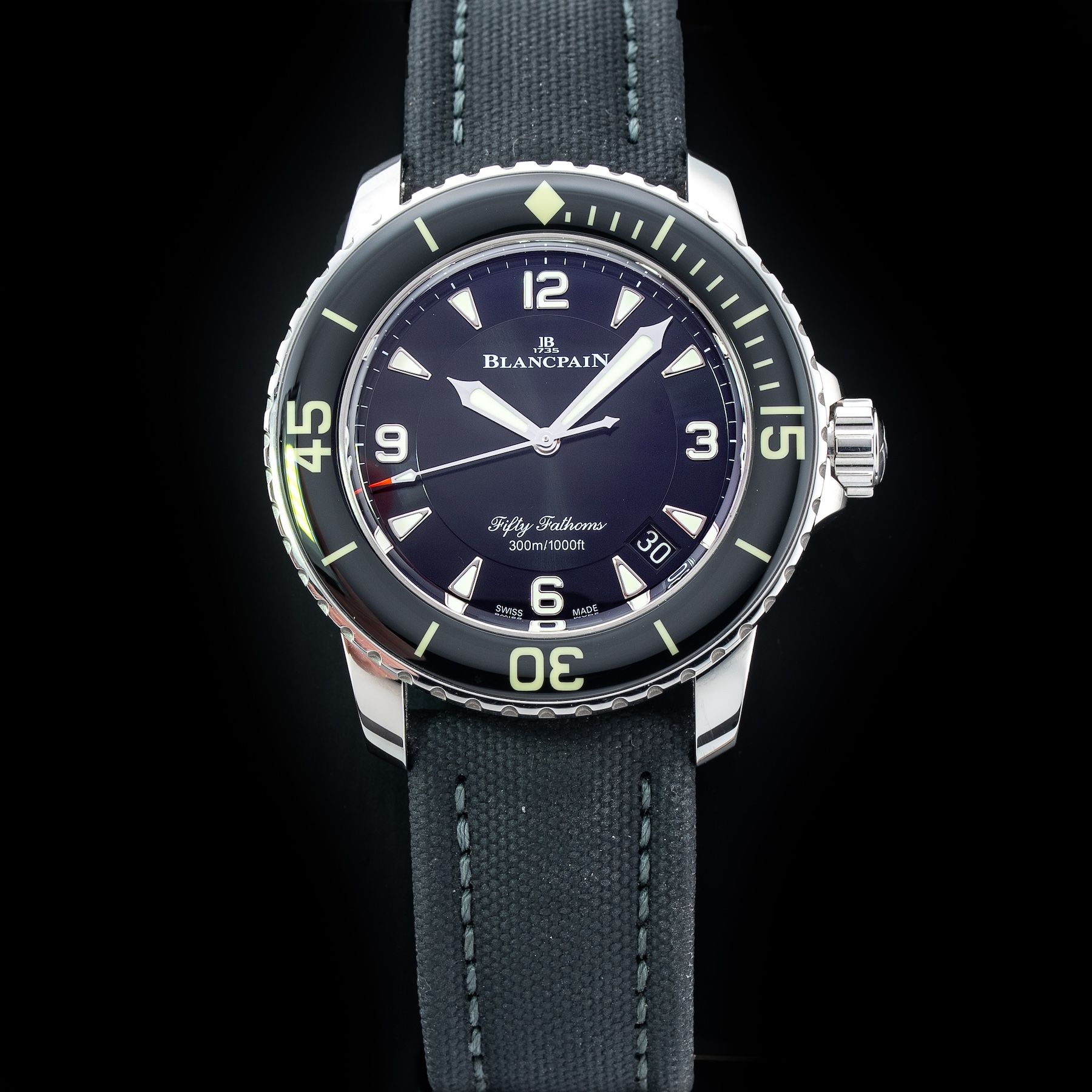 This Blancpain 5015-1130-52 Fifty Fathoms Sport is in GREAT condition. This watch includes its Original Box, Original Papers and Warranty Not Card Dated. This watch has been fully authenticated and certified by Exquisite Timepieces. Please note, the photos shown are of the actual watch you will receive.