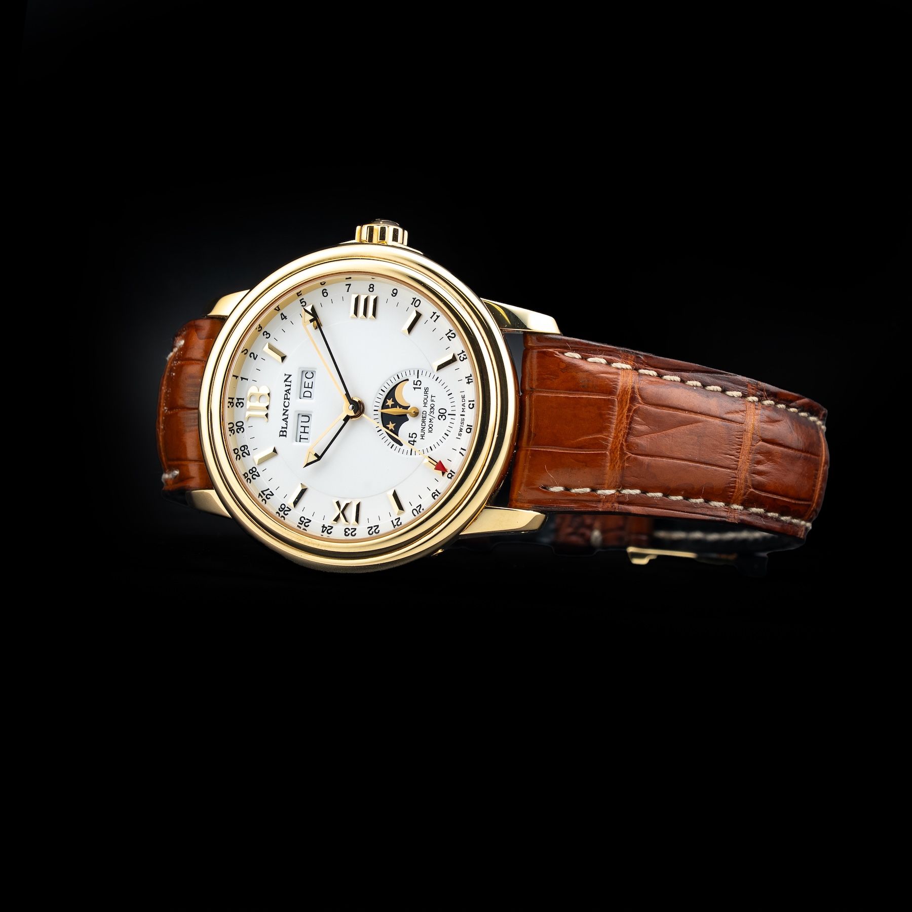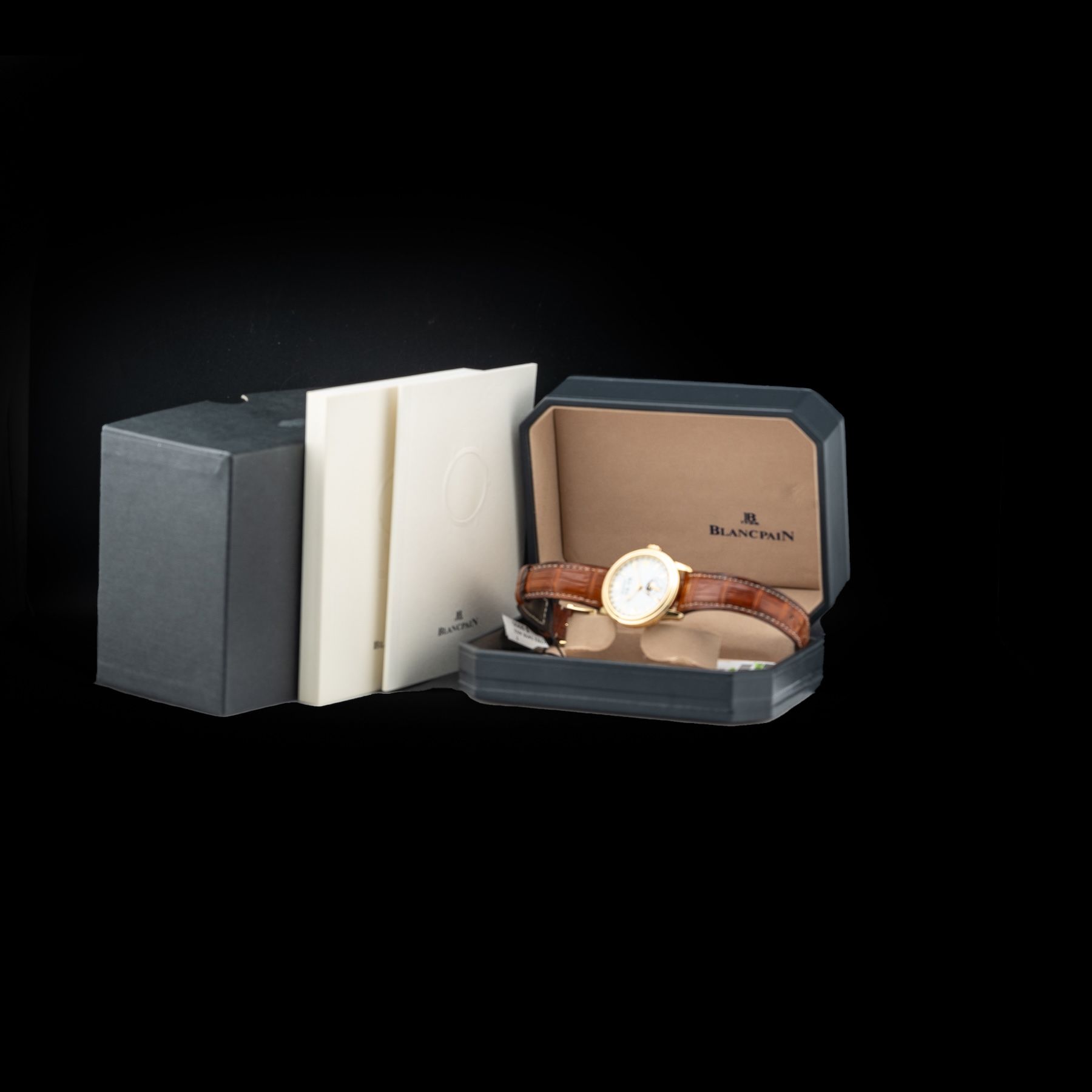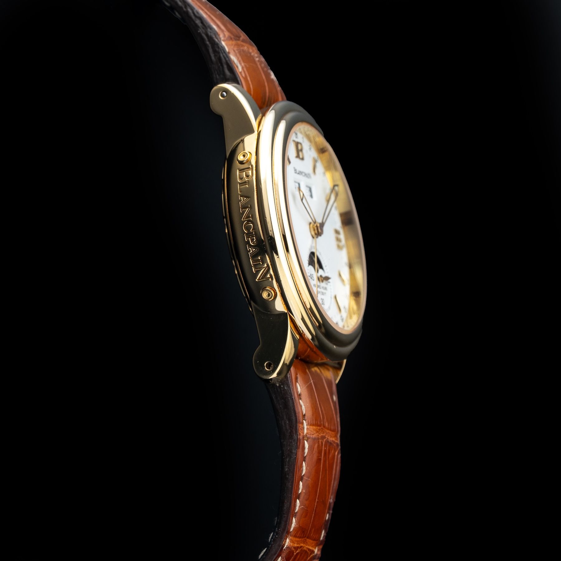 This Blancpain Lemán 2763 1418 A53 Moon Phases Complete Calendar is in GREAT condition. This watch includes its Original Box, Original Papers and Warranty Card Not Dated. This watch has been fully authenticated and certified by Exquisite Timepieces. Please note, the photos shown are of the actual watch you will receive.