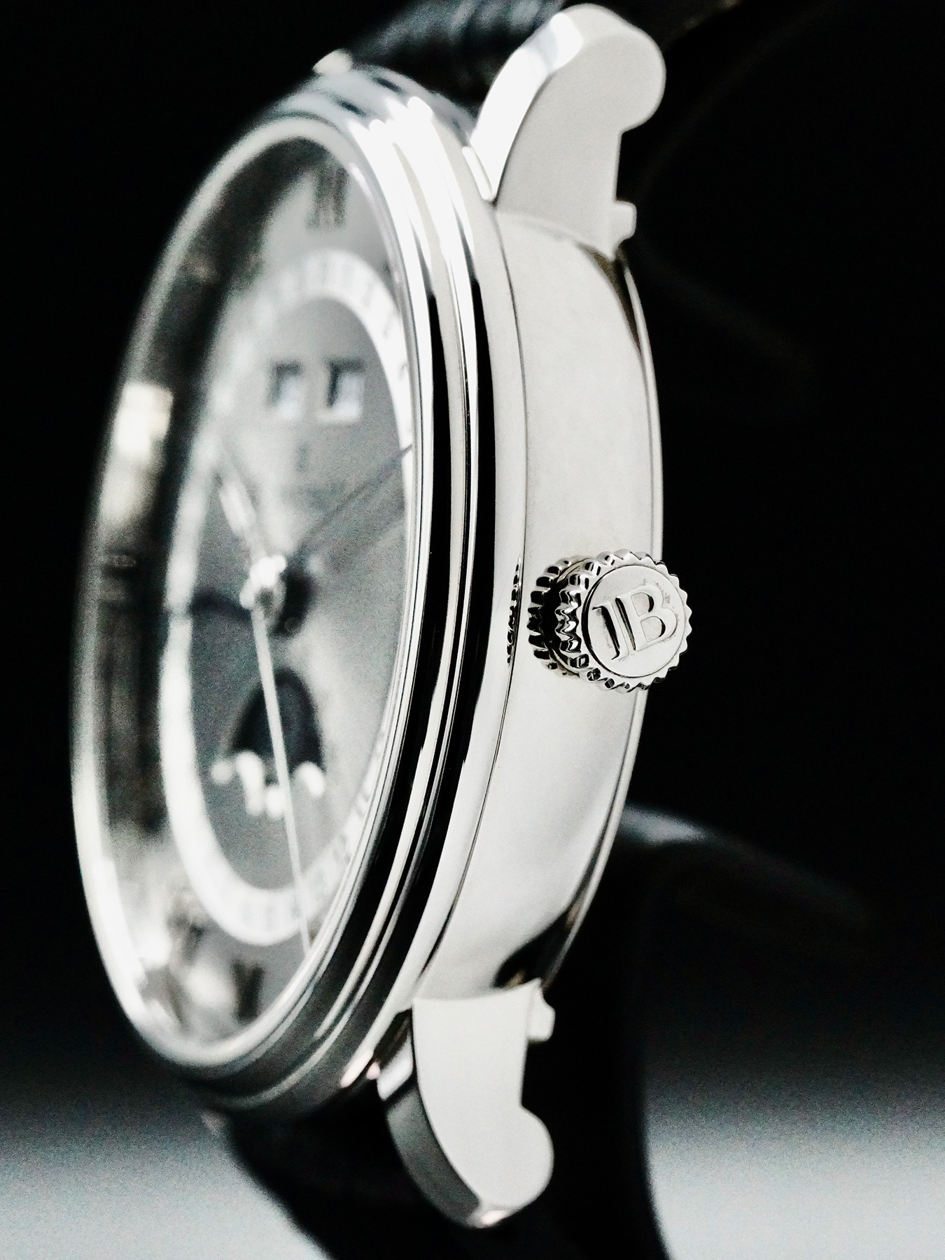This watch features a 40mm steel case mounted on leather strap. This watch also sports an grey dial. Powered by a Mechanical Automatic Movement. Water resistance up to 30 meters.