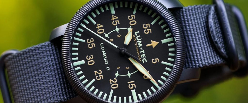 The watch features a sandwich dial with luminous treatment underneath the surface, protruding through from the lower level.