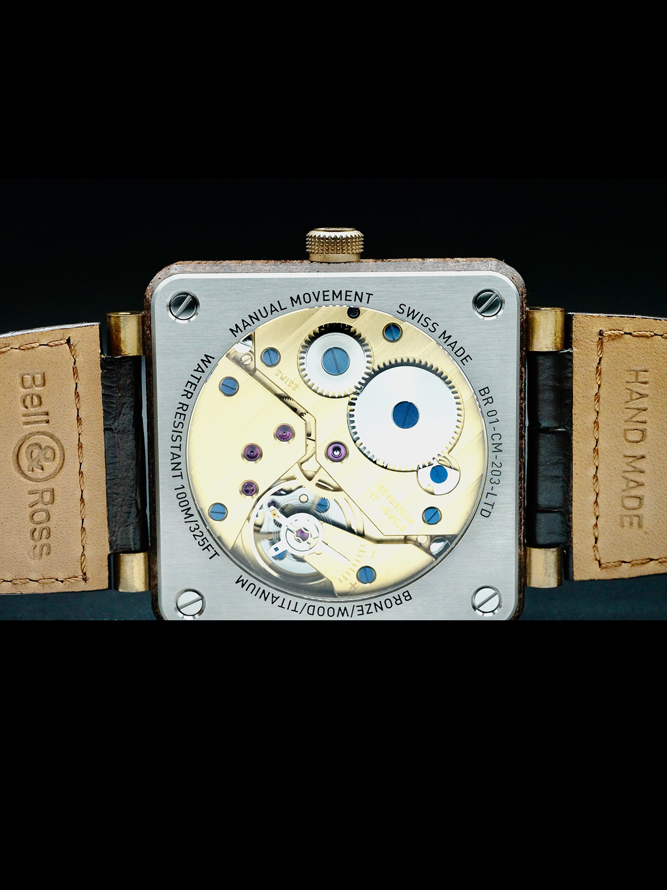 Mechanical Automatic movement powered by Bell & Ross Caliber BR-CAL.203 with a power reserve of approximately 56 hours. Water resistance up to 100 meters.