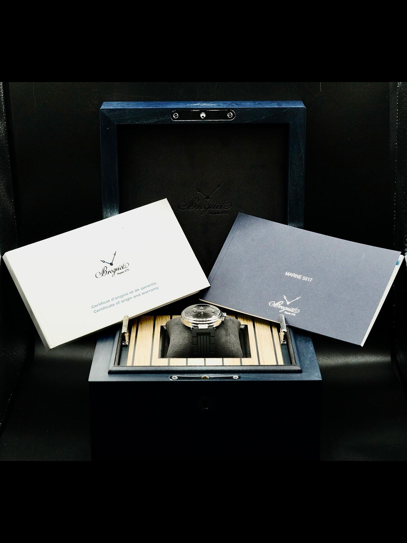 This Breguet Marine 5517TIG25ZU is in EXCELLENT condition. This watch includes its original box, instruction manual, and warranty dated for 2022. This watch has been fully authenticated and certified by Exquisite Timepieces.