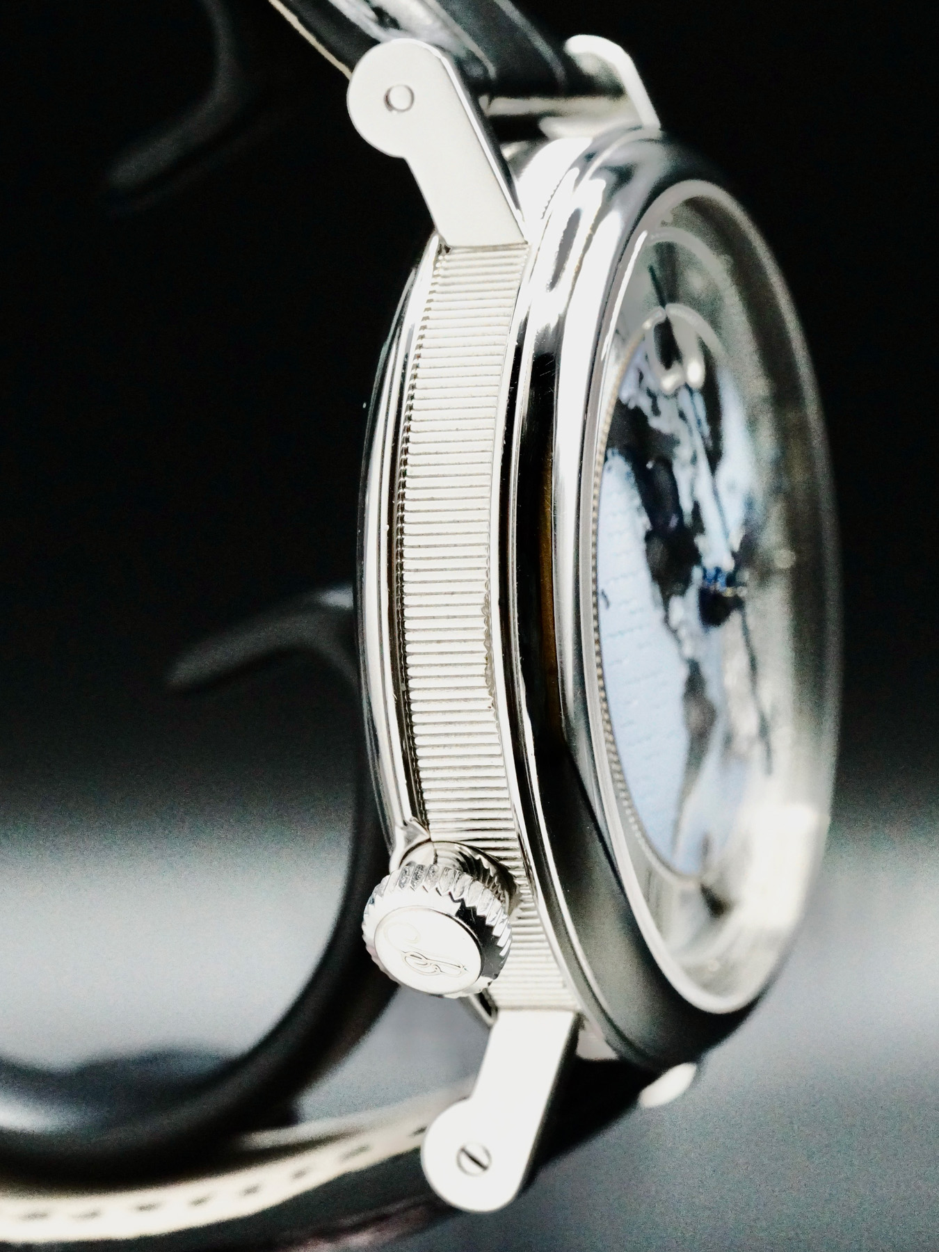 Automatic movement powered by Breguet Caliber 77F0 with a power reserve of approximately 55 hours. Water resistance up to 30 meters.