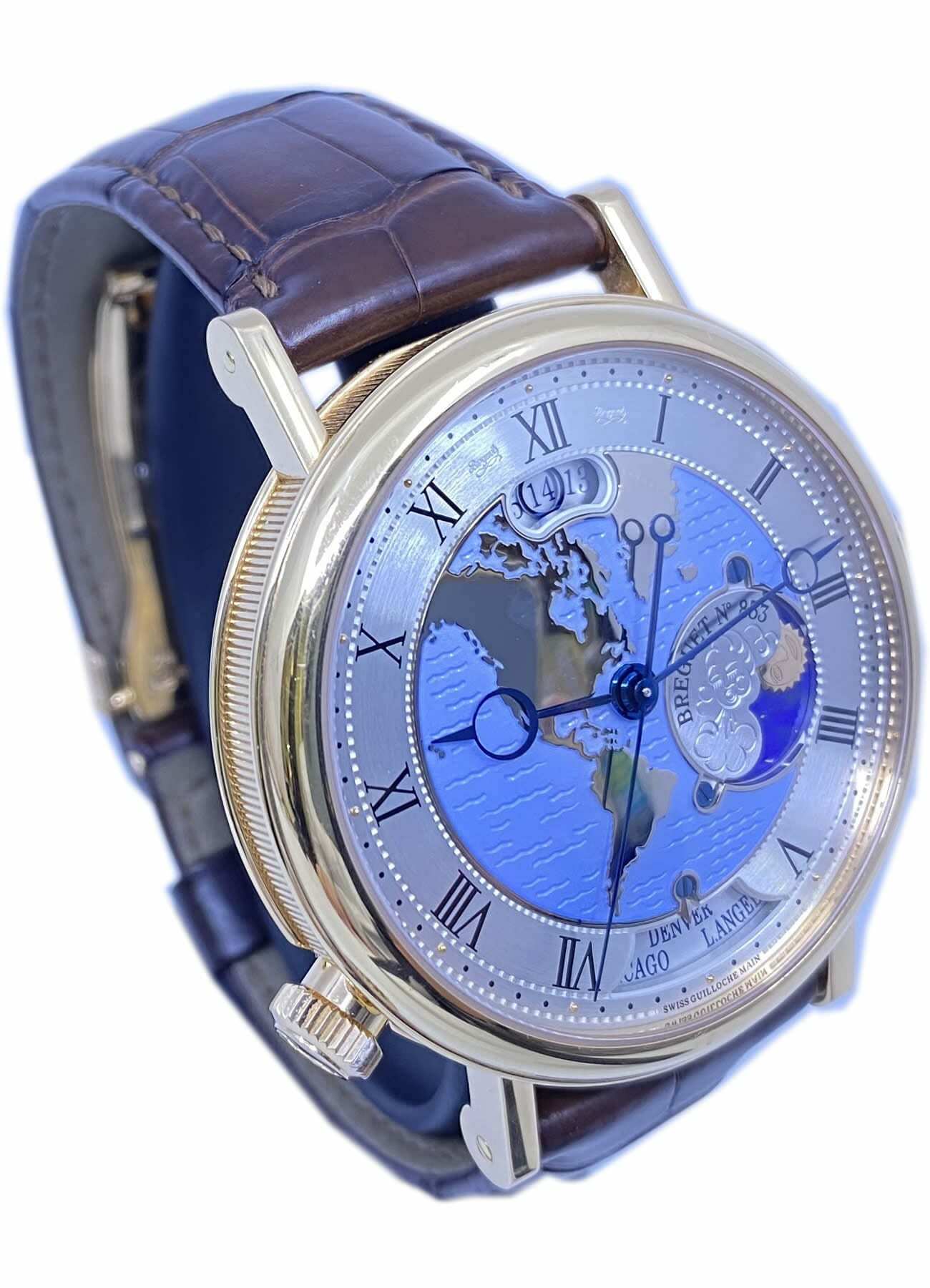 Classique wristwatch in 18-carat rose gold, Self-winding movement. Americas dial, This watch's most iconic complication, however, is its instant-jump time-zone display system with synchronised date, day/night and city indications, a world first for a mechanical watch. This function allows the traveller to easily display the time in two pre-selected time zones, changing instantly from one to the other simply by pressing a button, without disturbing the operation of the watch. Changing the time zone affects not only the time, but also the date synchronized through a "tracking" calendar system - and the day/night indicator.