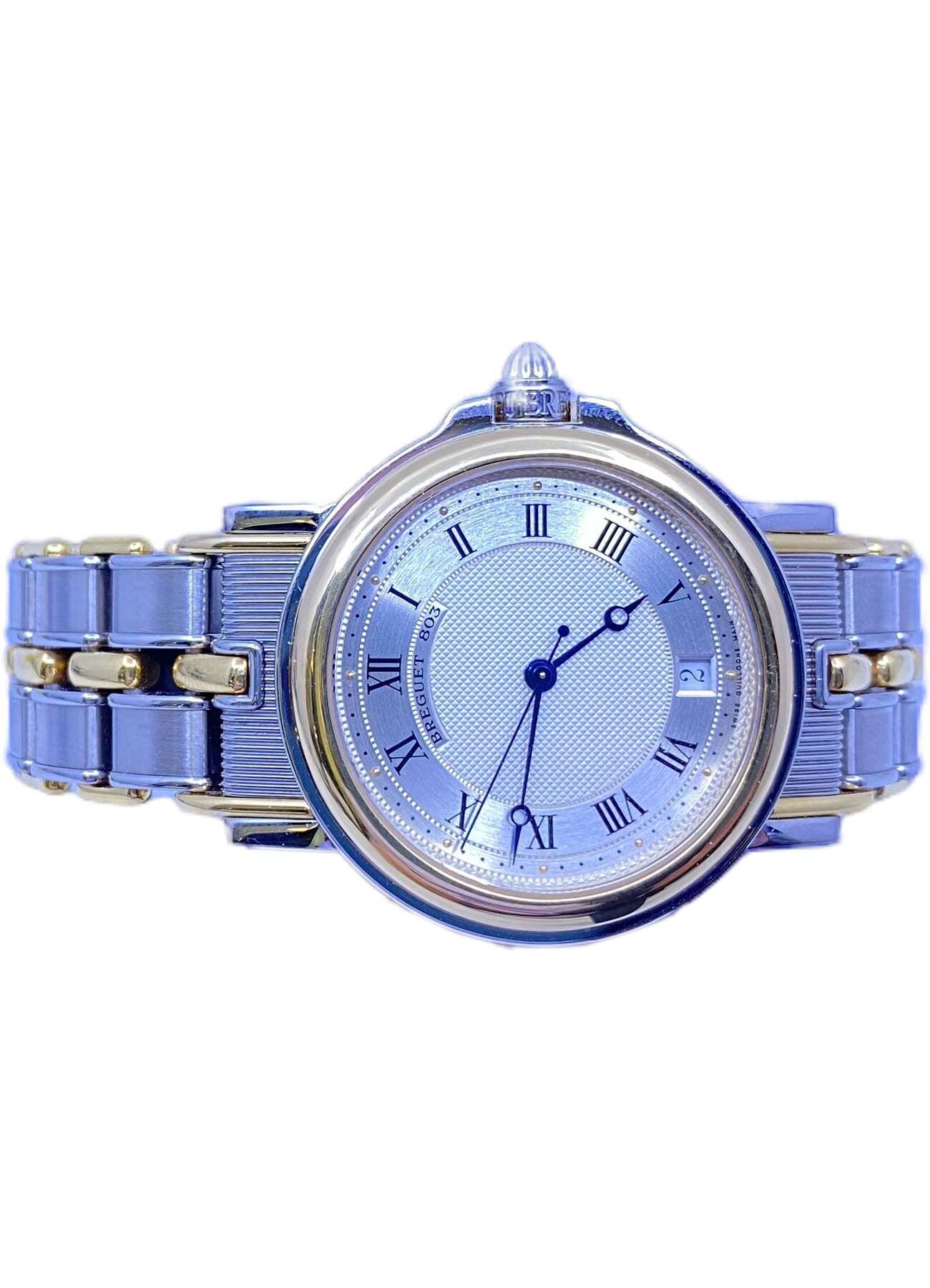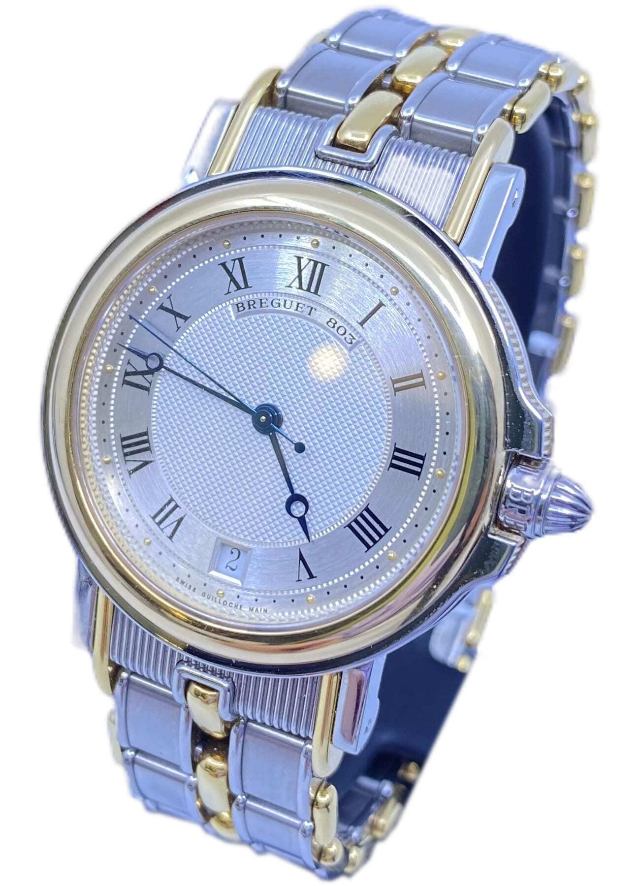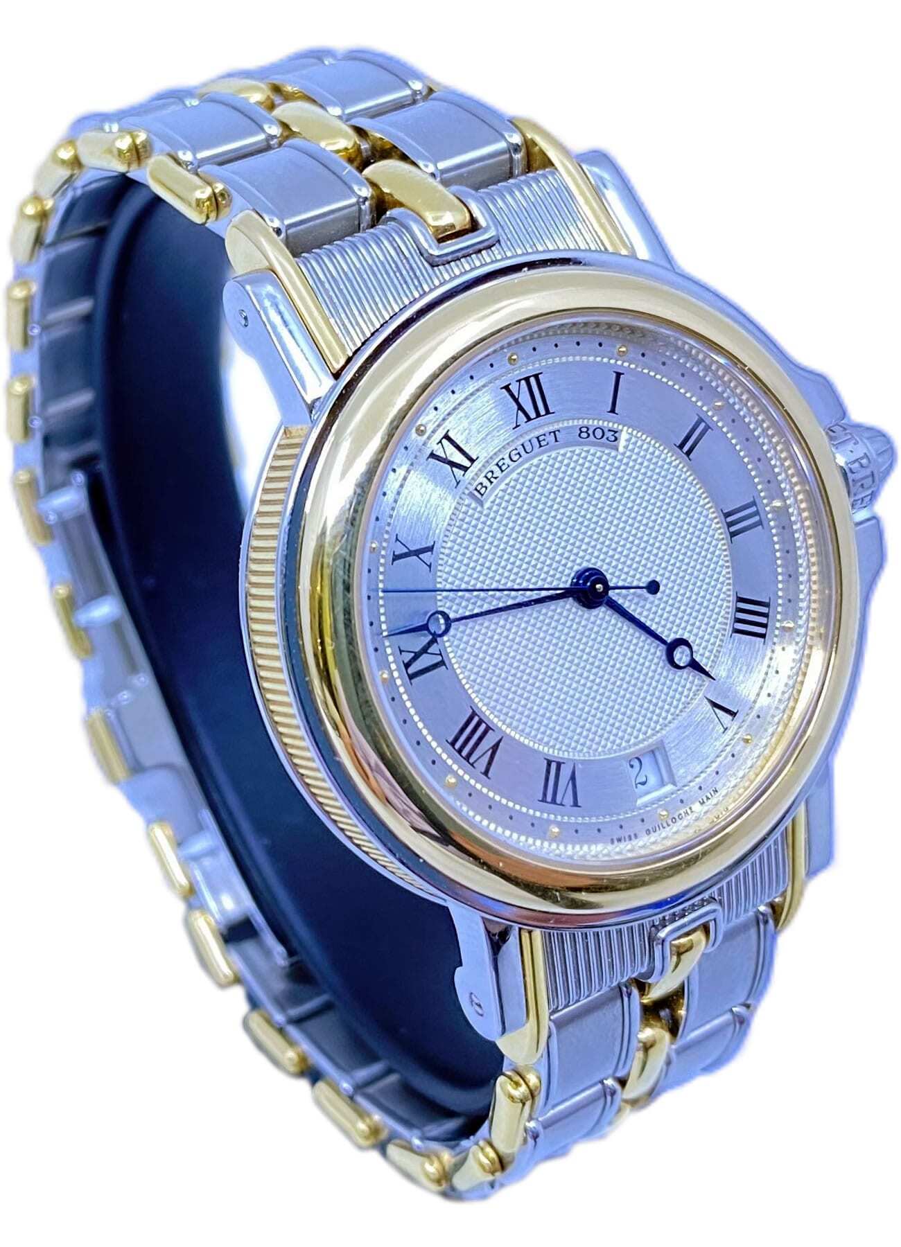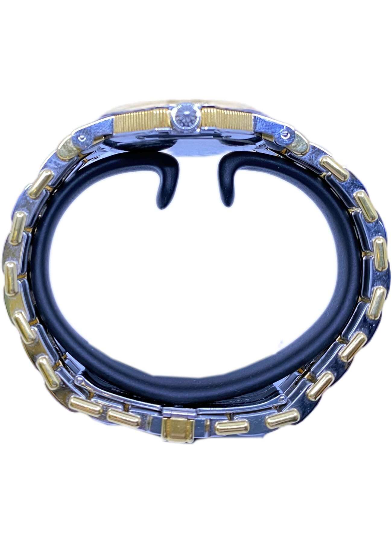 - This timepiece features a 35.5mm steel and gold case paired with a high quality steel bracelet. It showcases a distinctive silver dial and is powered by a precise automatic winding movement. The watch is designed with a water resistance of up to 50m.