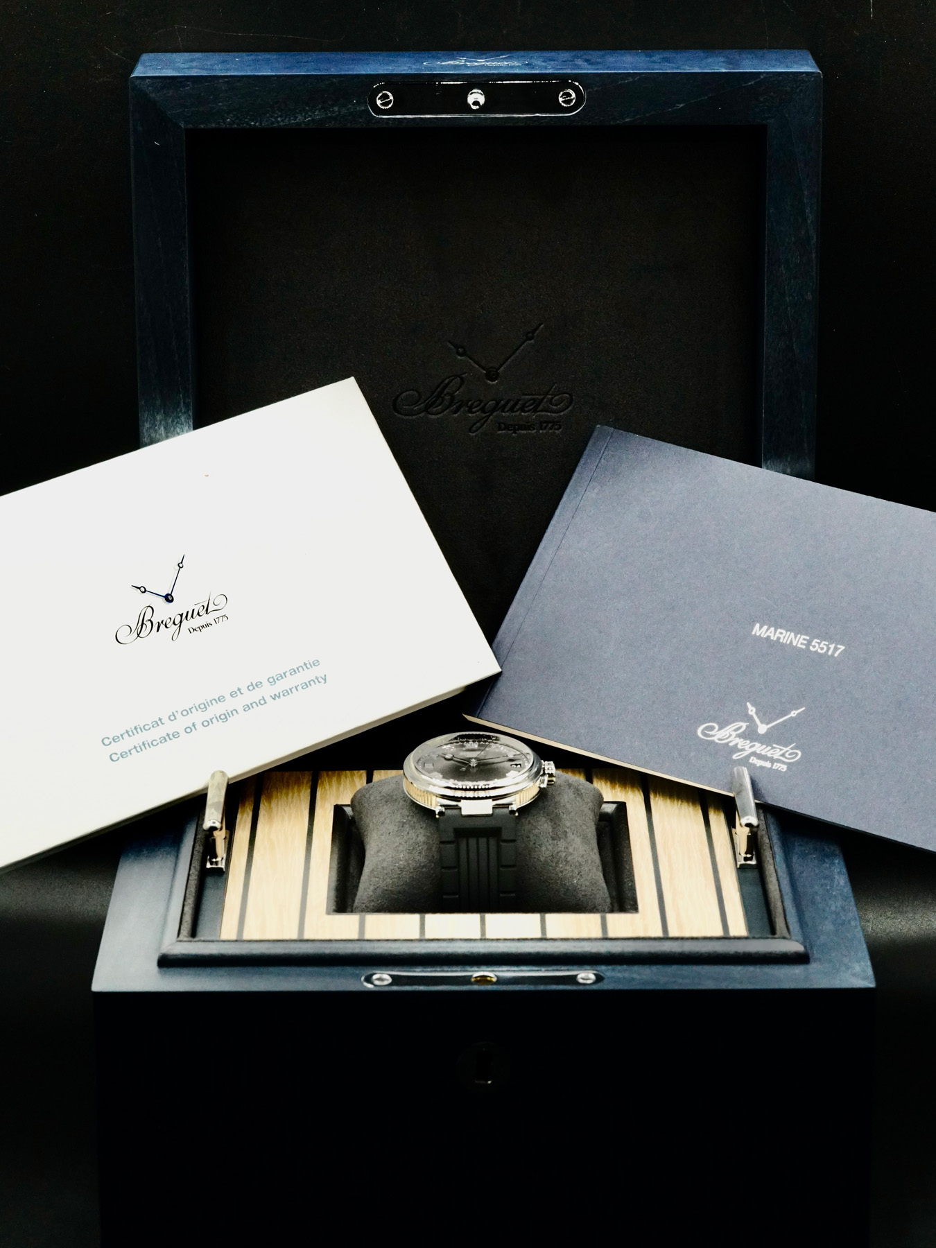 This Breguet Marine 5517TI/G2/5ZU is in EXCELLENT condition. This watch includes its original box, instruction manual, and certificate of origin & warranty dated for January 2022.