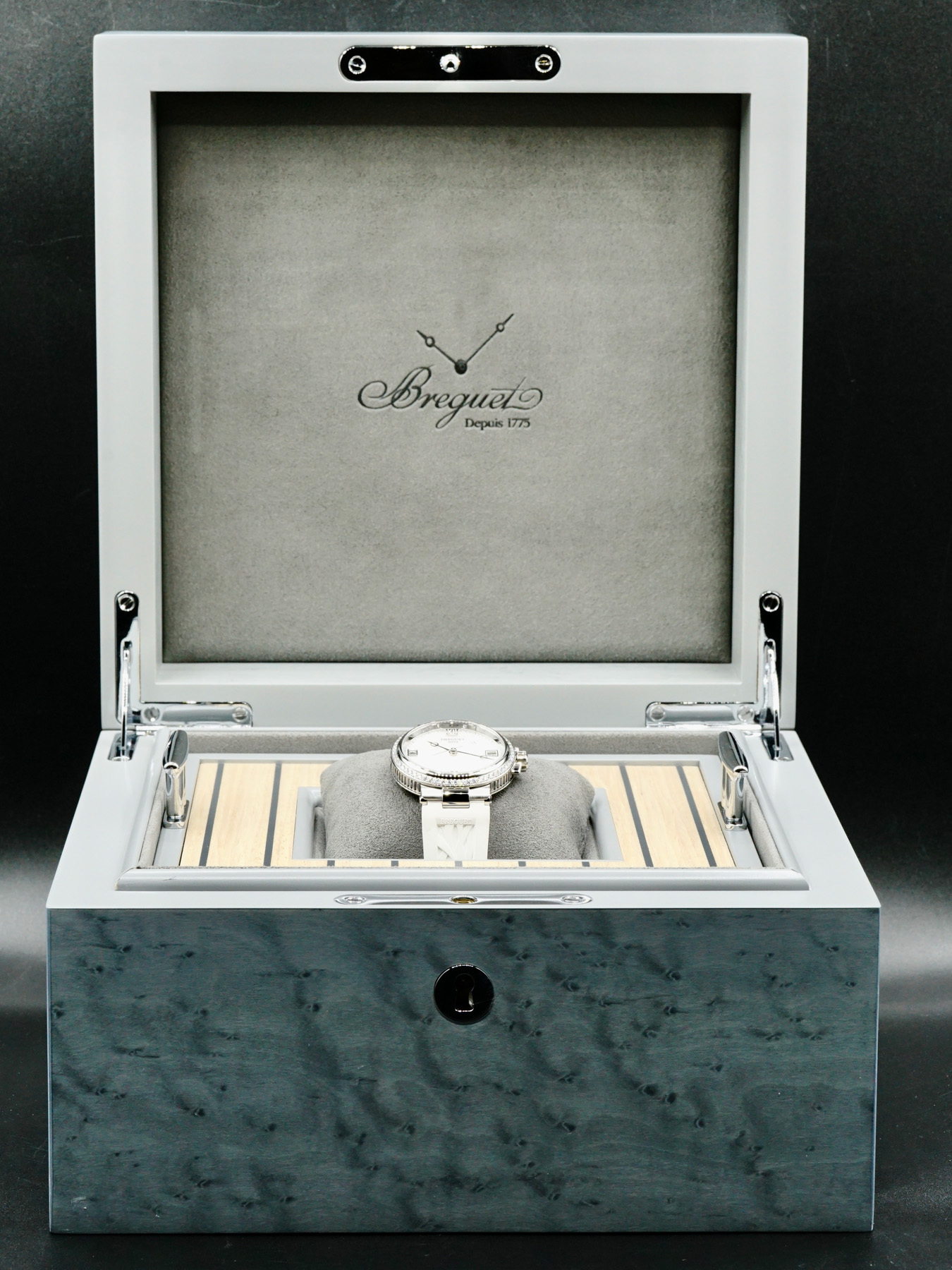 Self-winding movement powered by Breguet Calibre 591A with a power reserve of approximately 38 hours. Water resistance up to 50 meters.