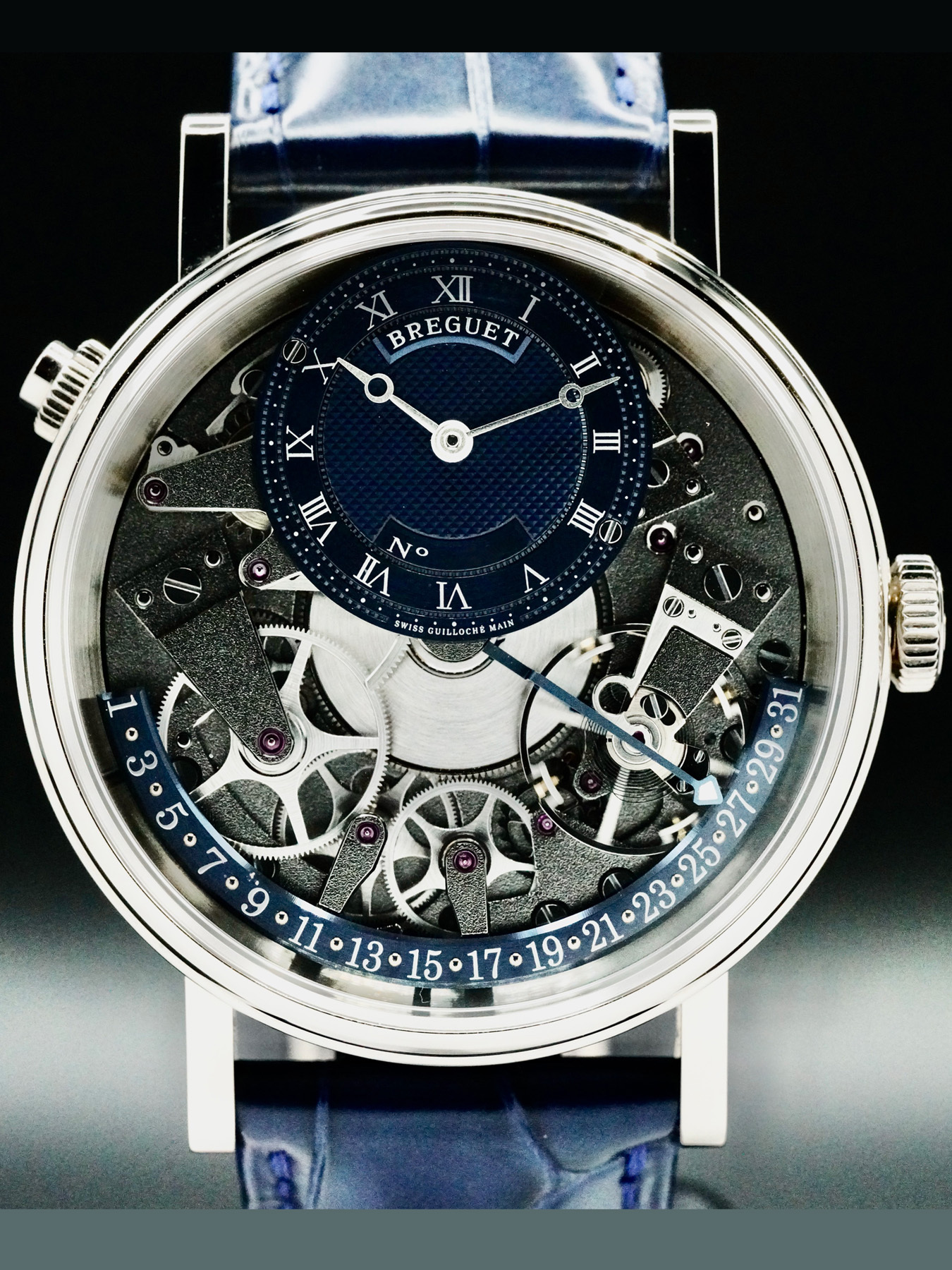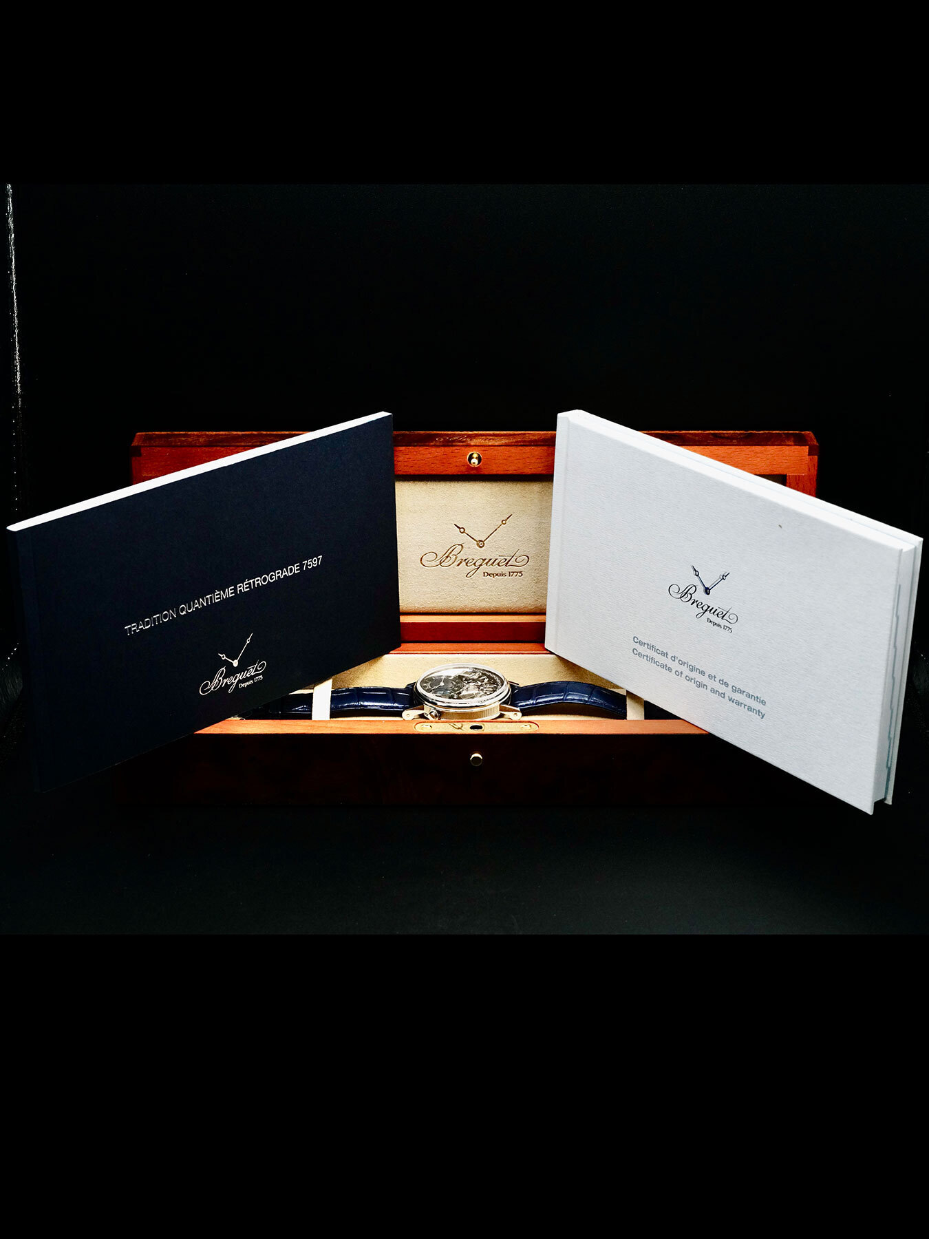 This Breguet Tradition Quantième Rétrograde 7597BB/GY/9WU is in EXCELLENT condition. This watch includes its original box, instruction manual, and certificate of origin and warranty not dated. This watch has been fully authenticated and certified by Exquisite Timepieces.
