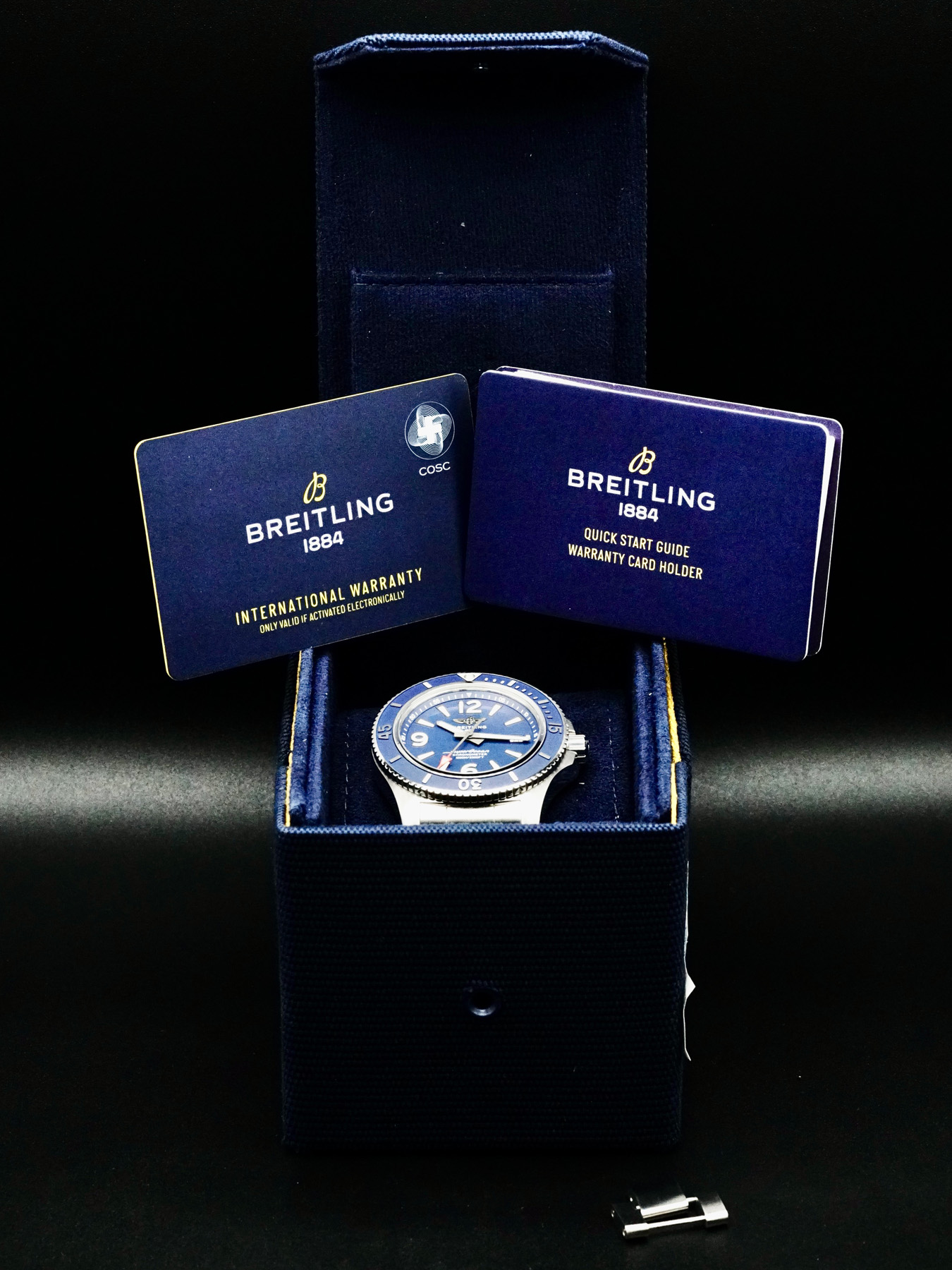 This Breitling A17367 Superocean is in EXCELLENT condition. This watch includes its original Box, instruction manual, and warranty card valid until January 2024. Extra stainless steel bracelet link. This watch has been fully authenticated and certified by Exquisite Timepieces.