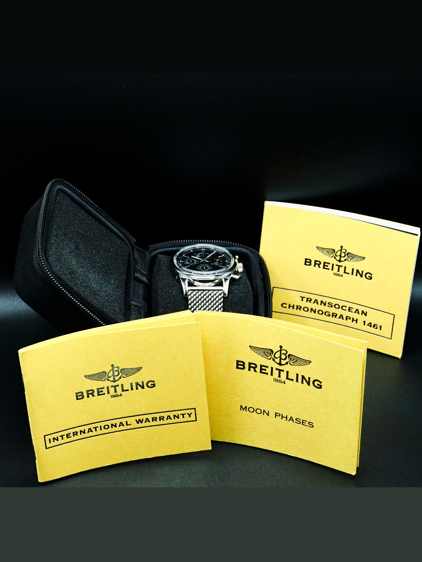 This Breitling A1931012/BB68 Transocean Chronograph 1461 is in GREAT condition. This watch includes a travel case, papers, and warranty card not dated. No original box. This watch has been fully authenticated and certified by Exquisite Timepieces.