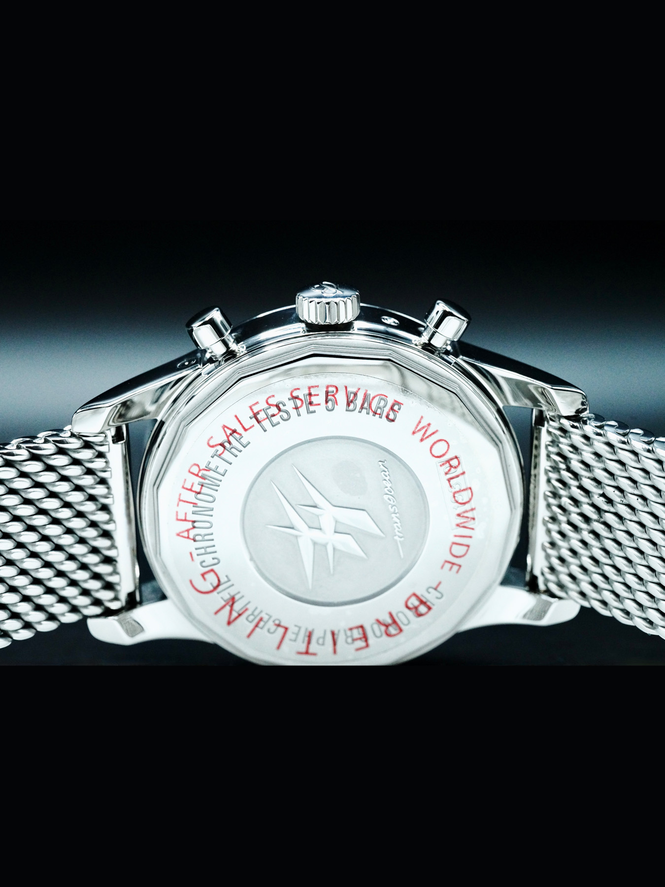 This watch features a 43 mm stainless steel case and bracelet. This watch also sports a black dial. Powered by a self-winding automatic movement. Water resistance up to 50 meters.