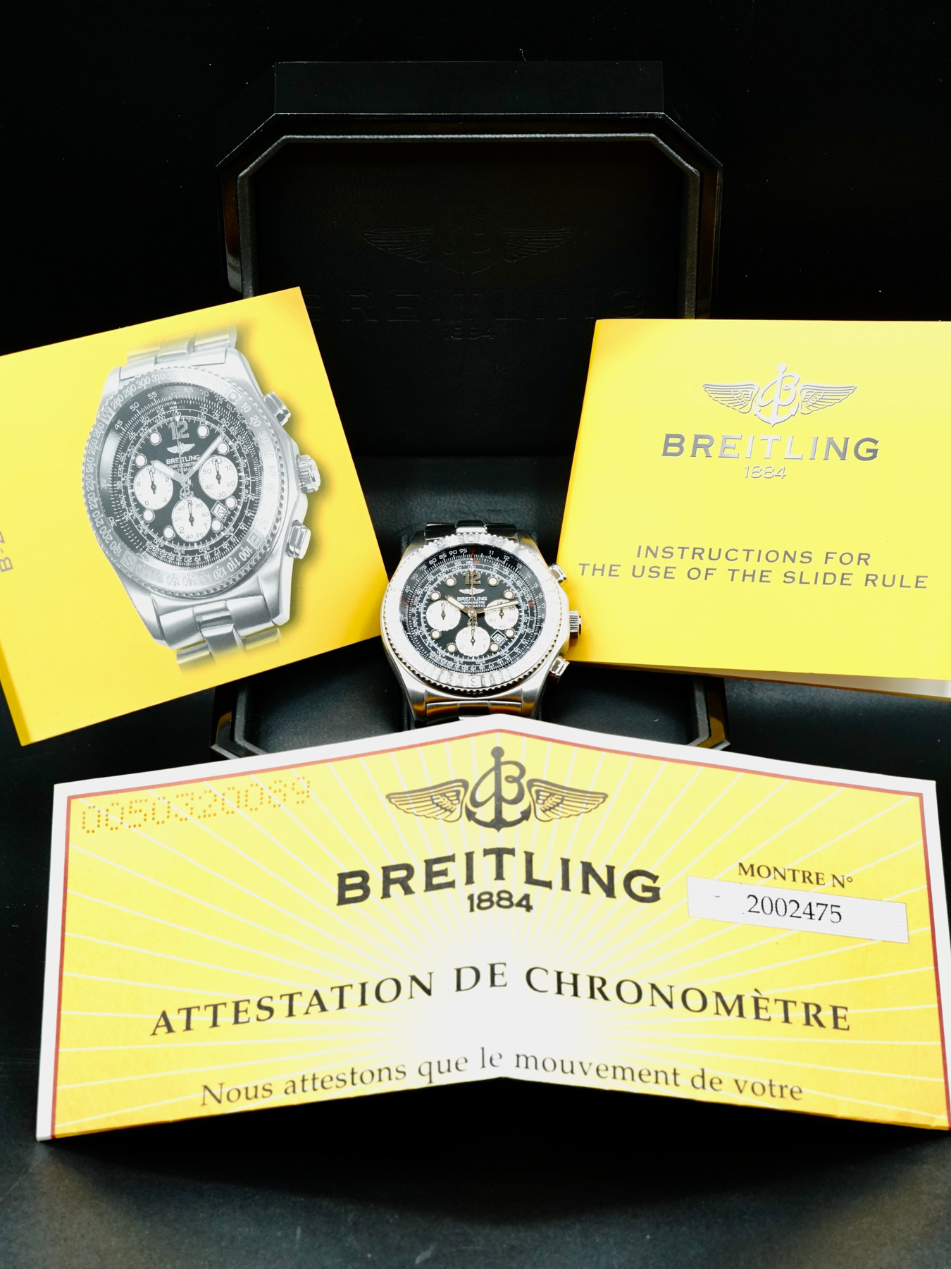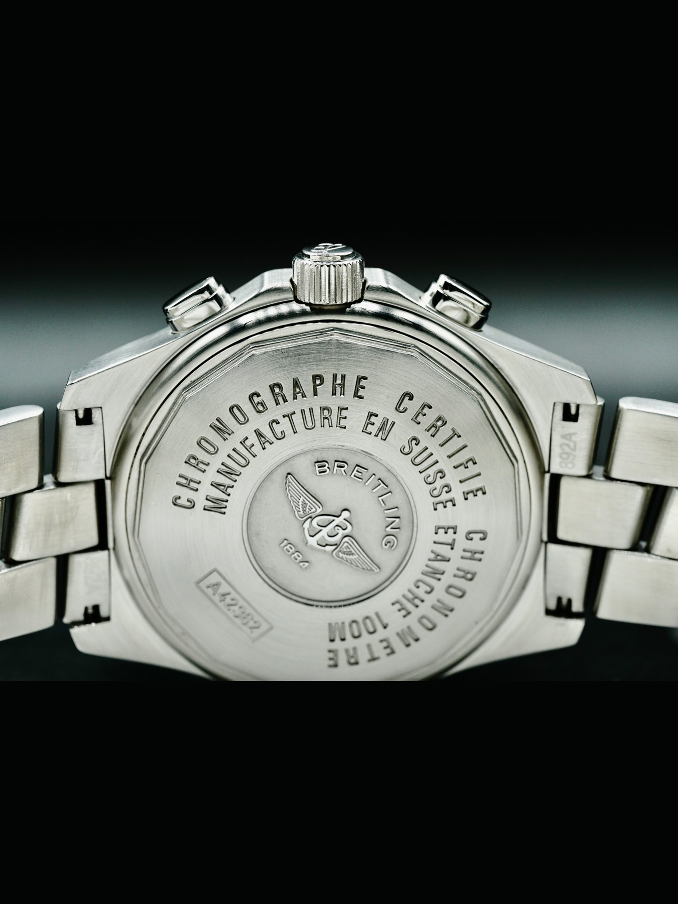This Breitling A42362 B-2 Black Chronograph is in EXCELLENT condition. Has box and instructions booklets. There are no papers.