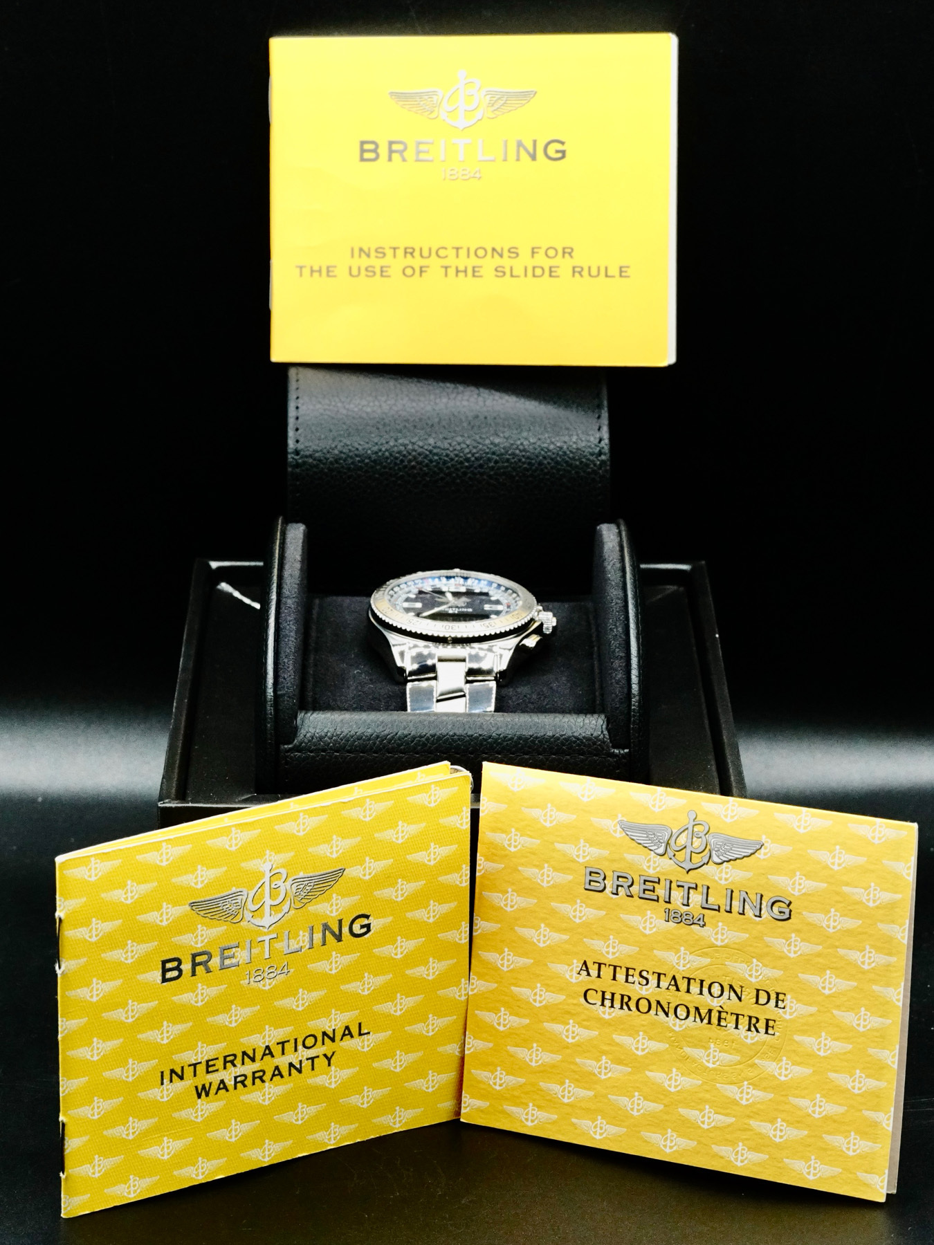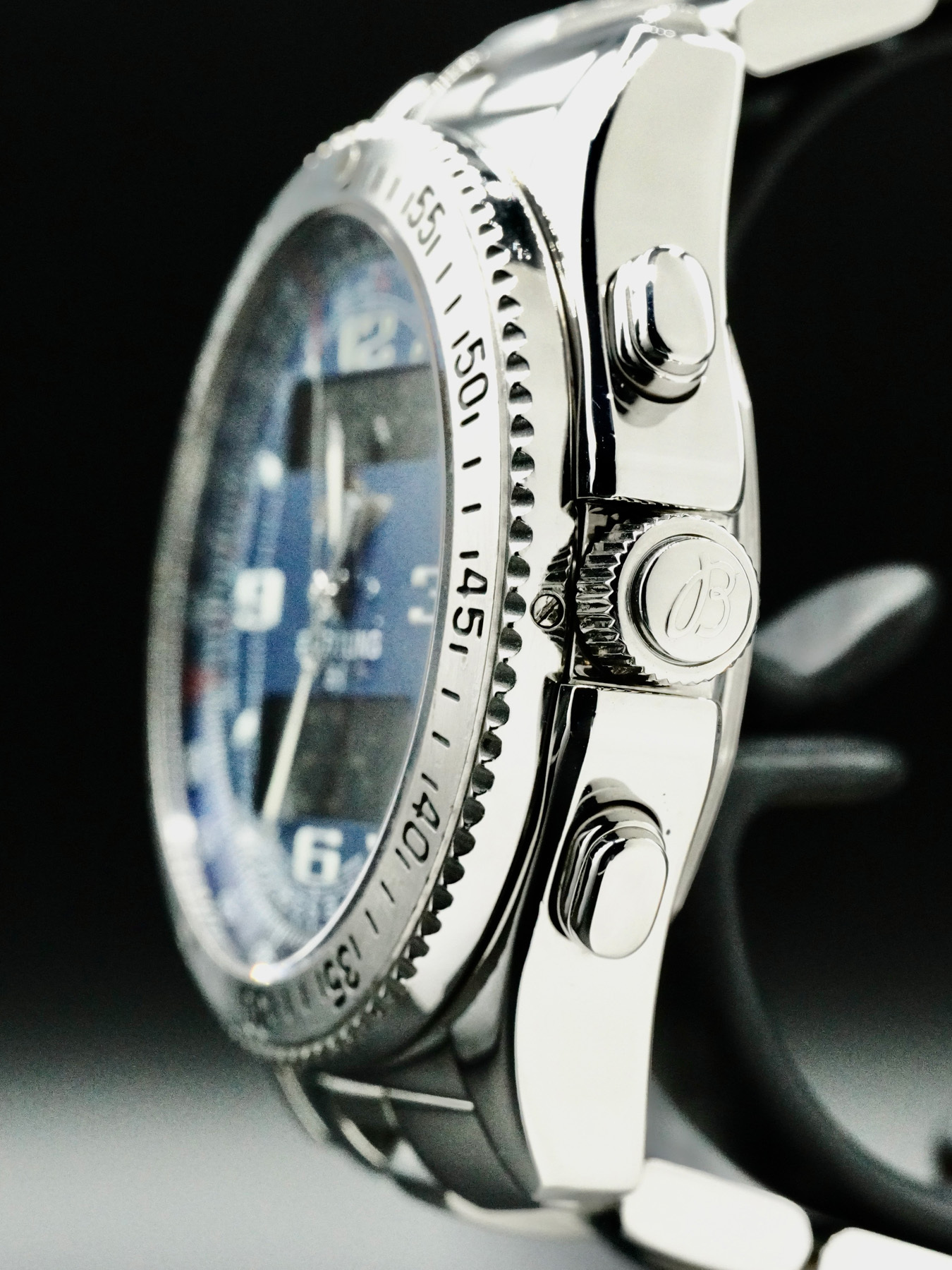 This Breitling A68362 B-1 Blue Dial is in GOOD condition. This watch includes original box, instruction booklet and warranty card dated 2008.