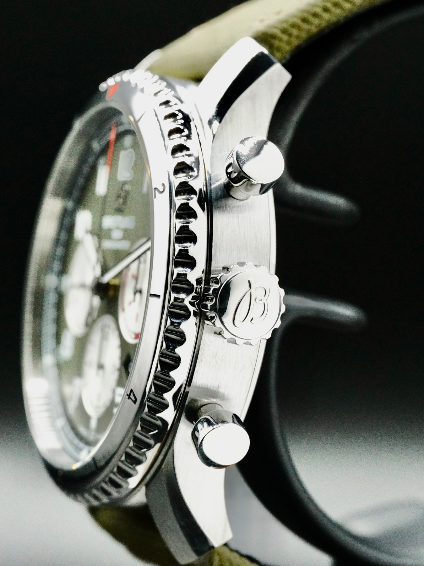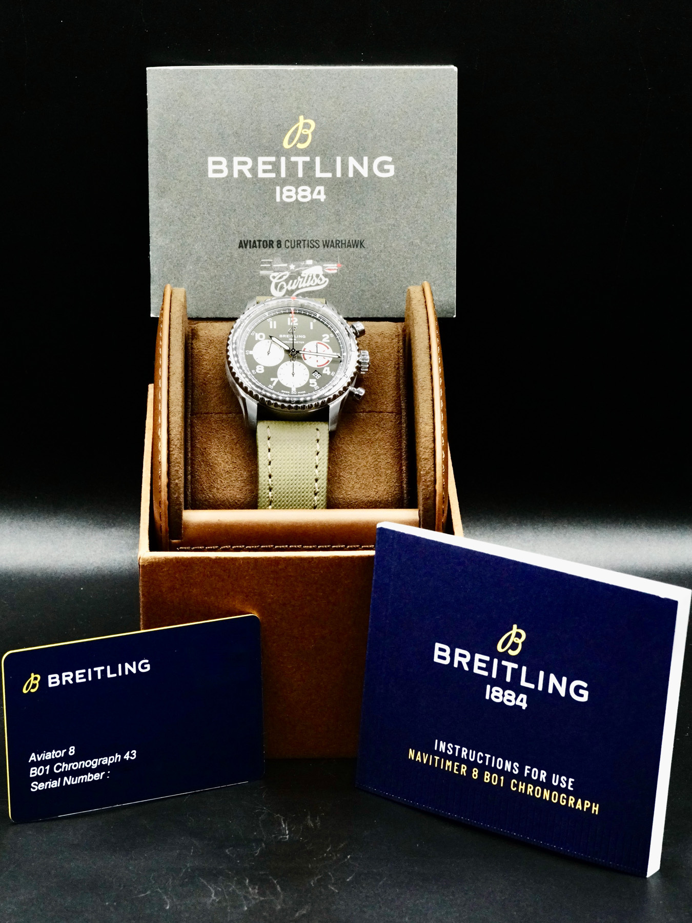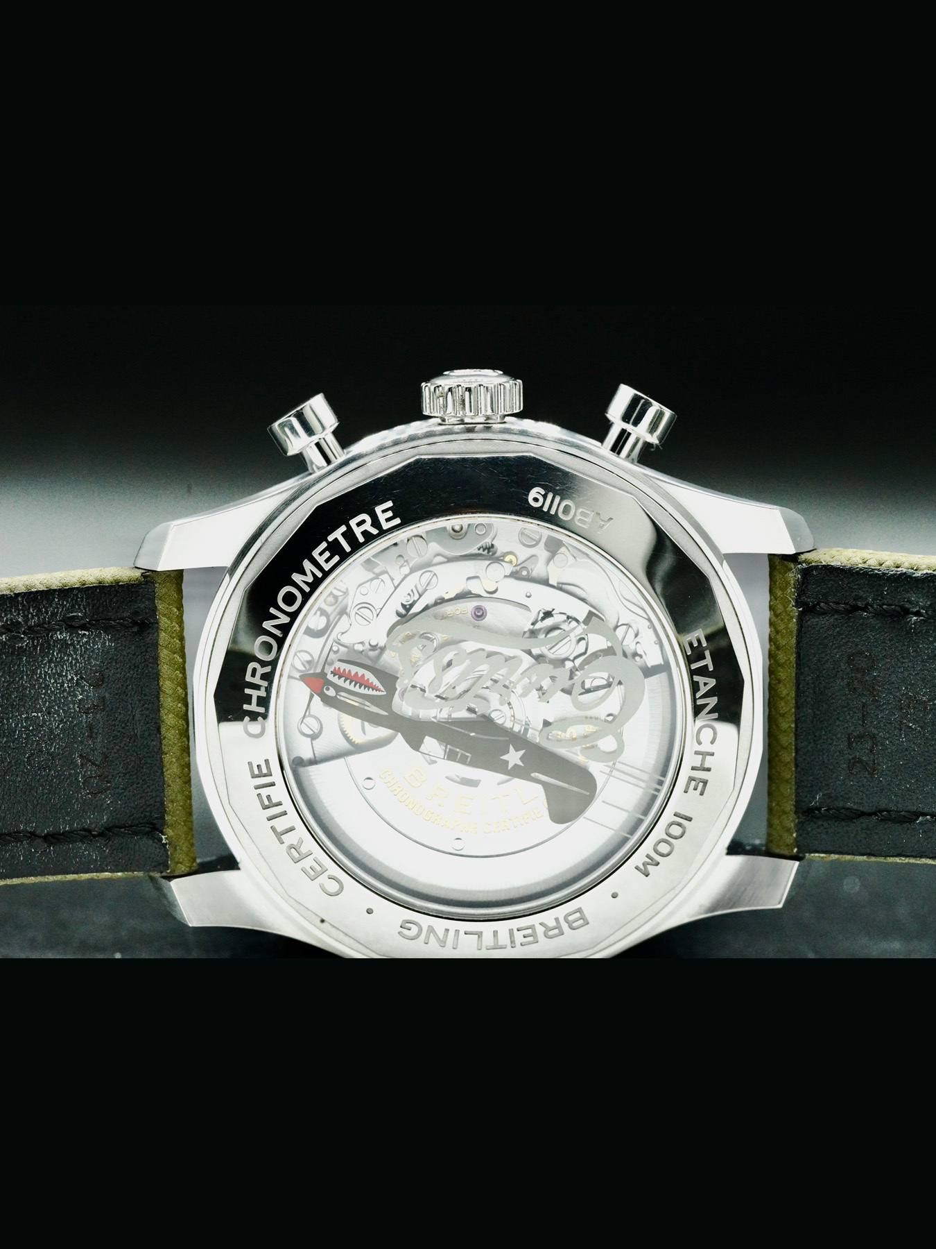 This Breitling AB0119 Aviator 8 B01 Chronograph 43 Mosquito is in GREAT condition. This watch includes original box, instruction booklet, warranty card.