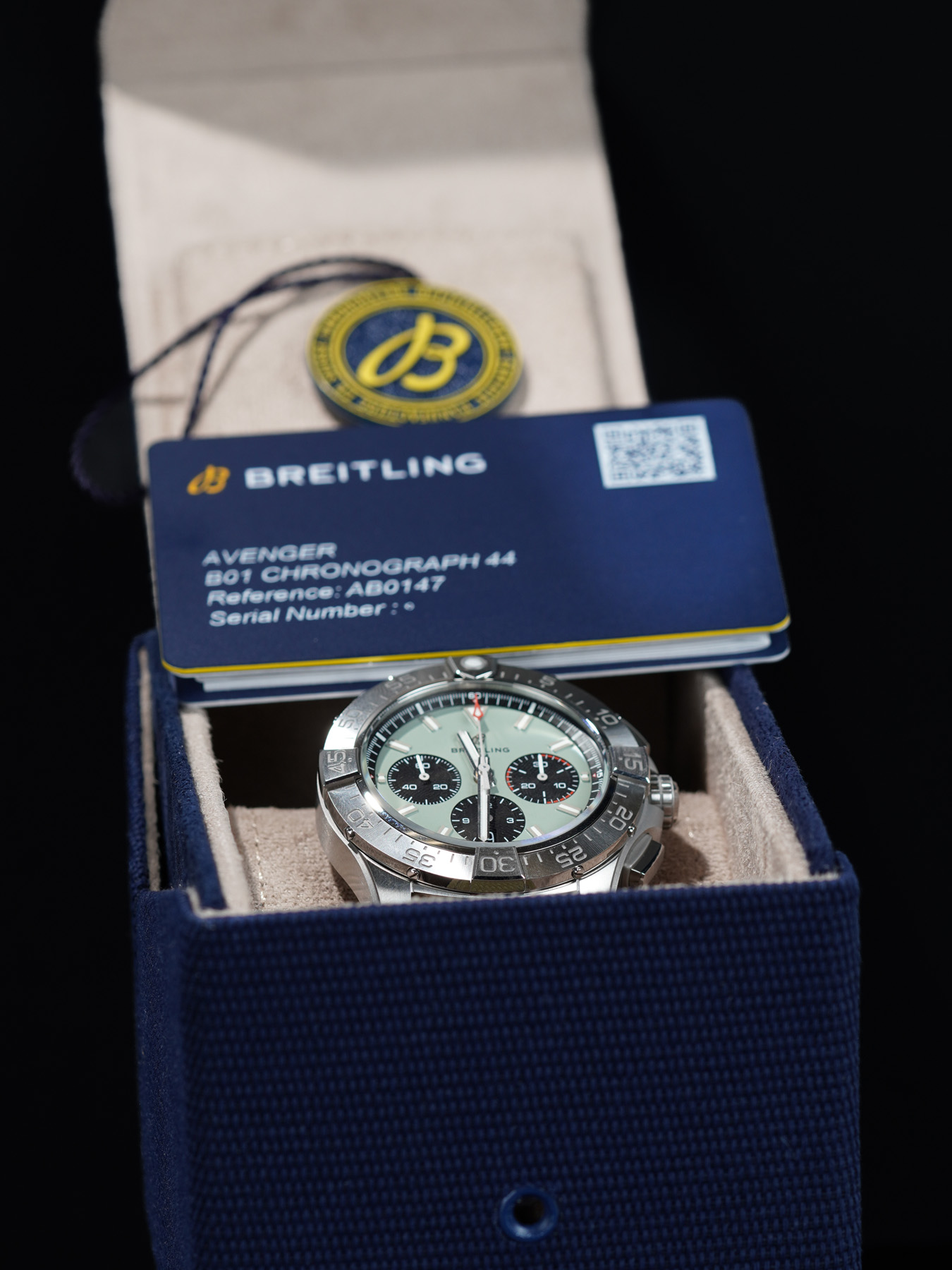This BreitlingAB0147 Avenger B01 Chronograph 44 is in GREAT condition. This watch includes its Original Box, papers, and warranty card not dated. This watch has been fully authenticated and certified by Exquisite Timepieces.