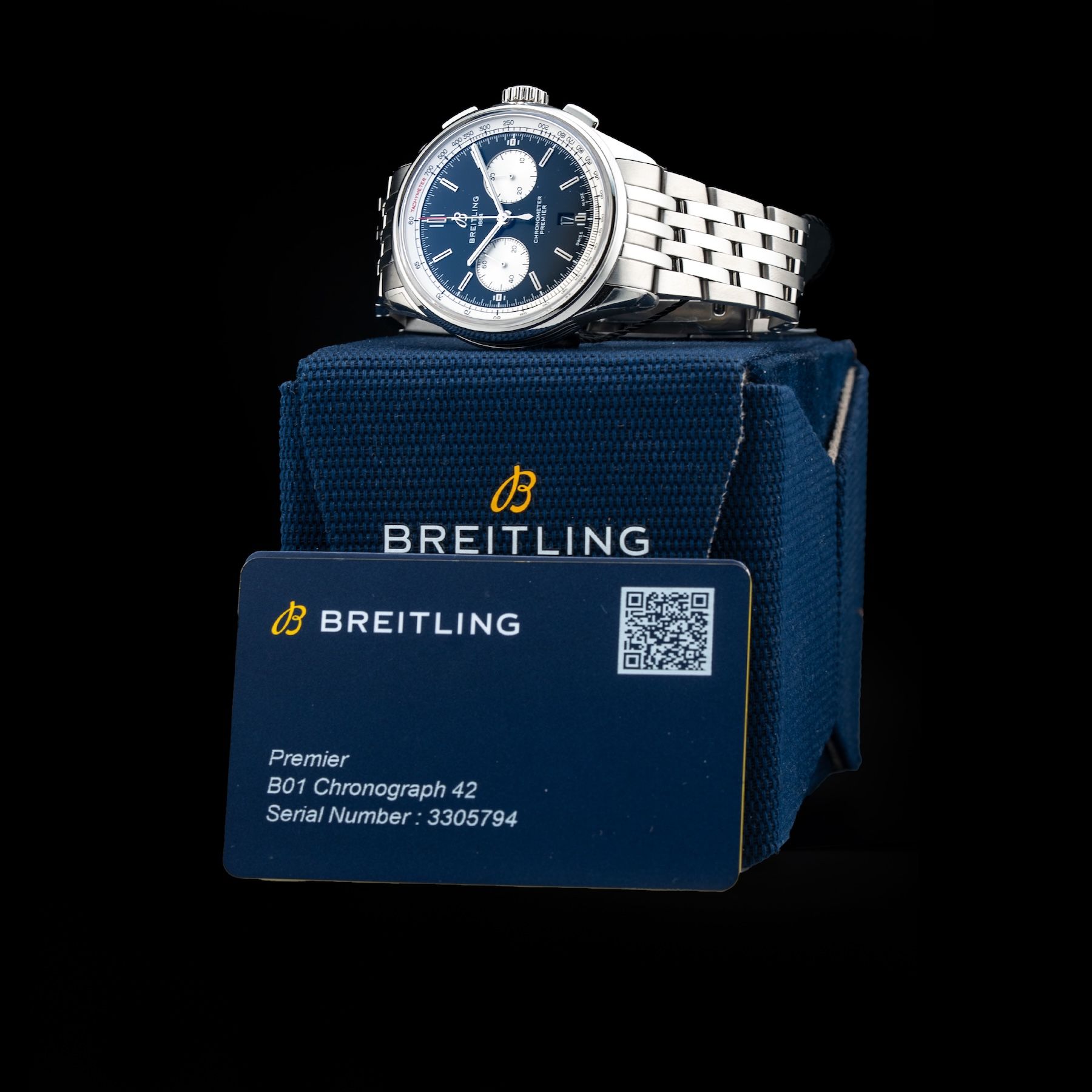 This Breitling B01 Chronograph 42 is in GREAT condition. This watch includes its Original Box, Original Papers and Warranty Card Not Dated. This watch has been fully authenticated and certified by Exquisite Timepieces. Please note, the photos shown are of the actual watch you will receive.