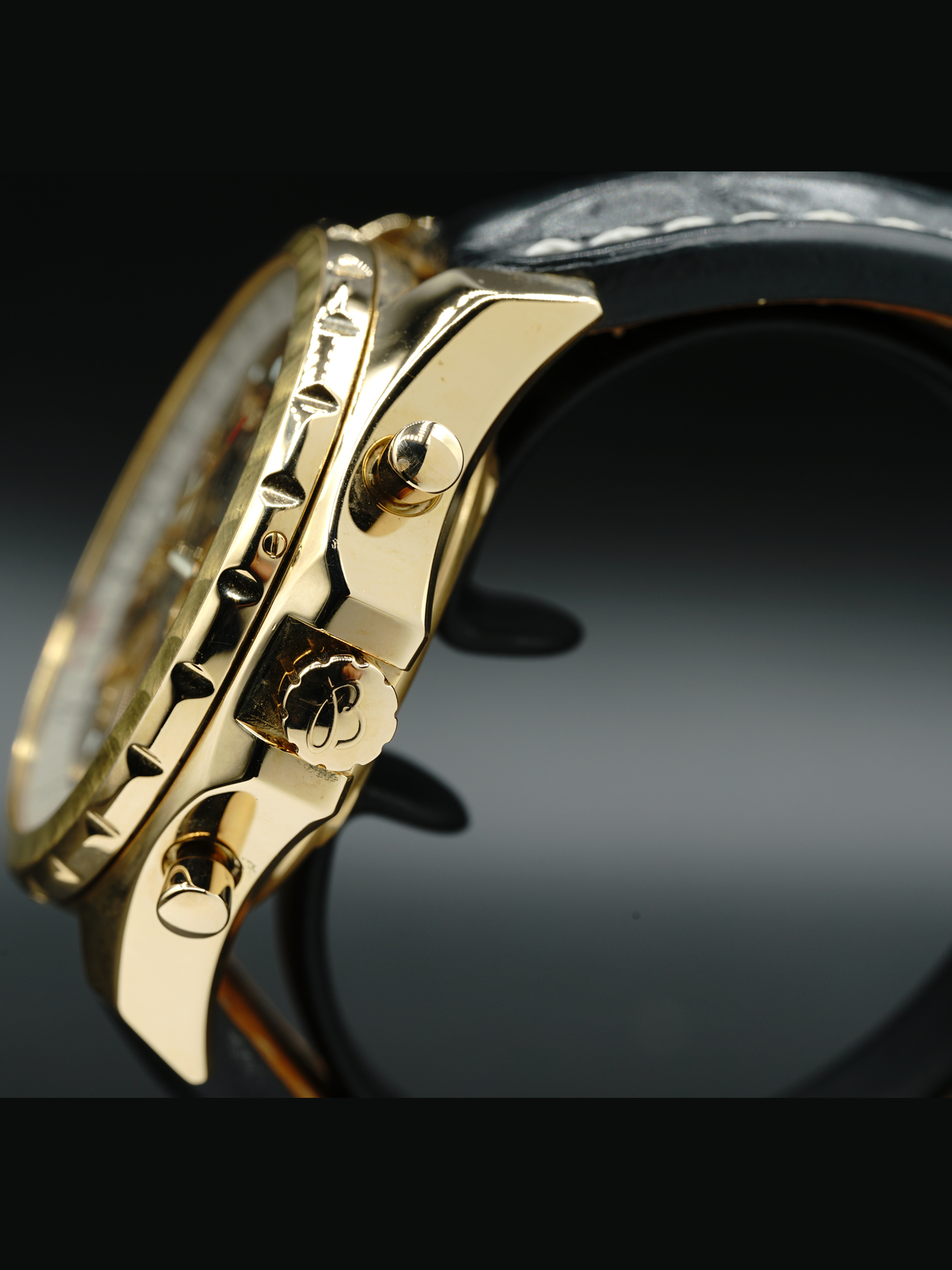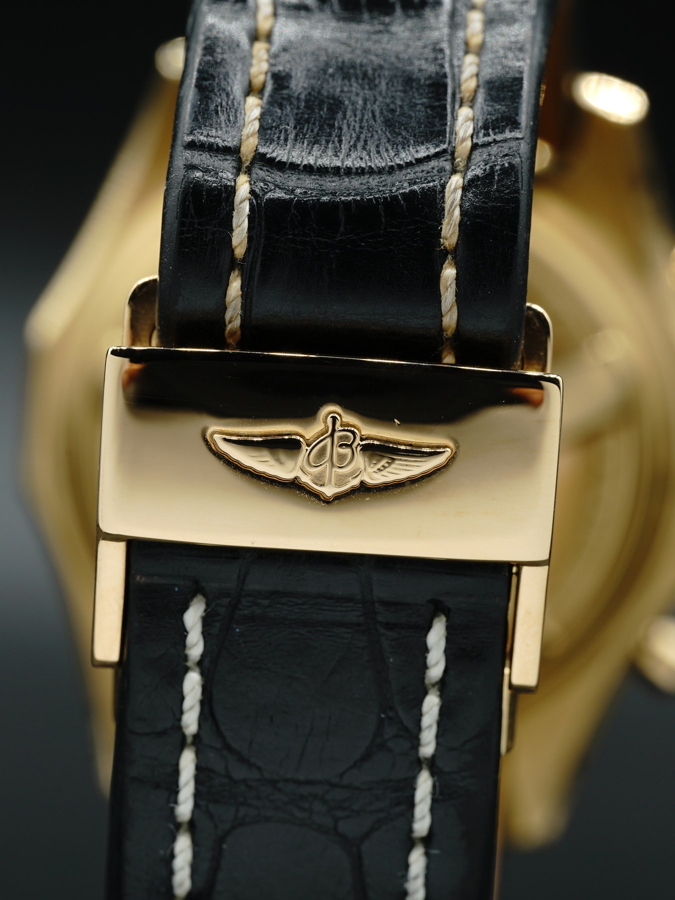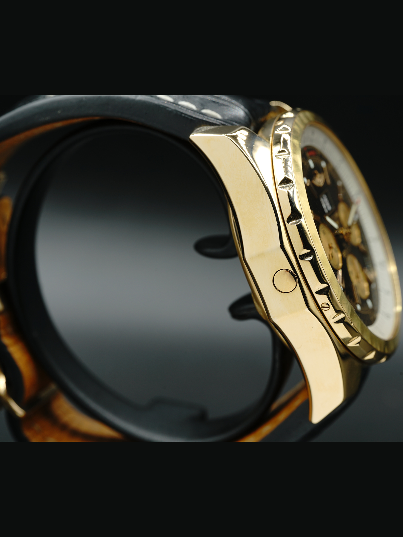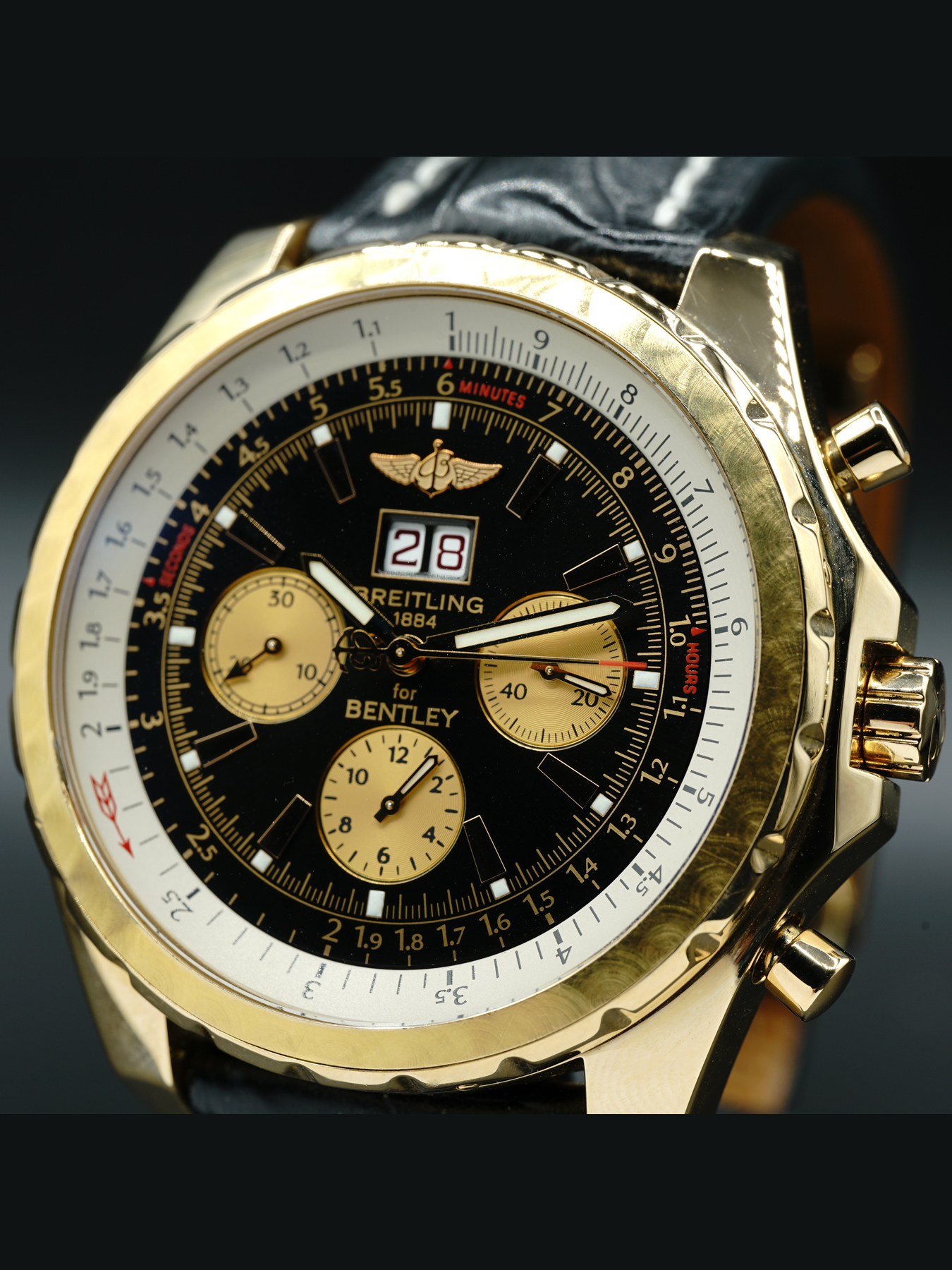 This Breitling for Bentley 6.75 18k Solid Yellow Gold is in EXCELLENT condition. This watch has grande date. Limited to 500 pieces. Case back resembles a Bently rim.