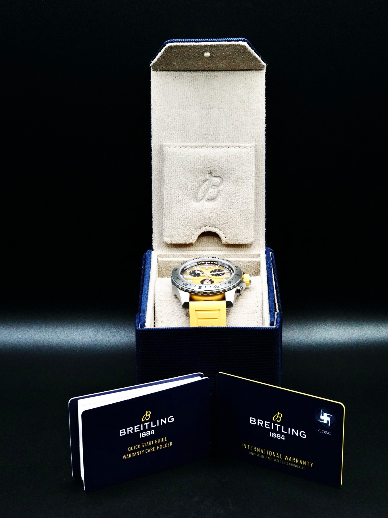 This Breitling Endurance Pro Ironman World Championship E823102A1I1S1 is in EXCELLENT condition. This watch includes its original box, instructions, and warranty card not dated. Limited Edition of 200 Pieces. This watch has been fully authenticated and certified by Exquisite Timepieces.