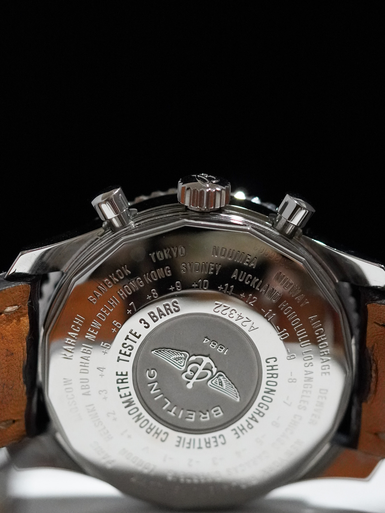 This Breitling Navitimer A24322 is in GREAT condition. It has boxes and papers. This watch has been fully authenticated and certified by Exquisite Timepieces.