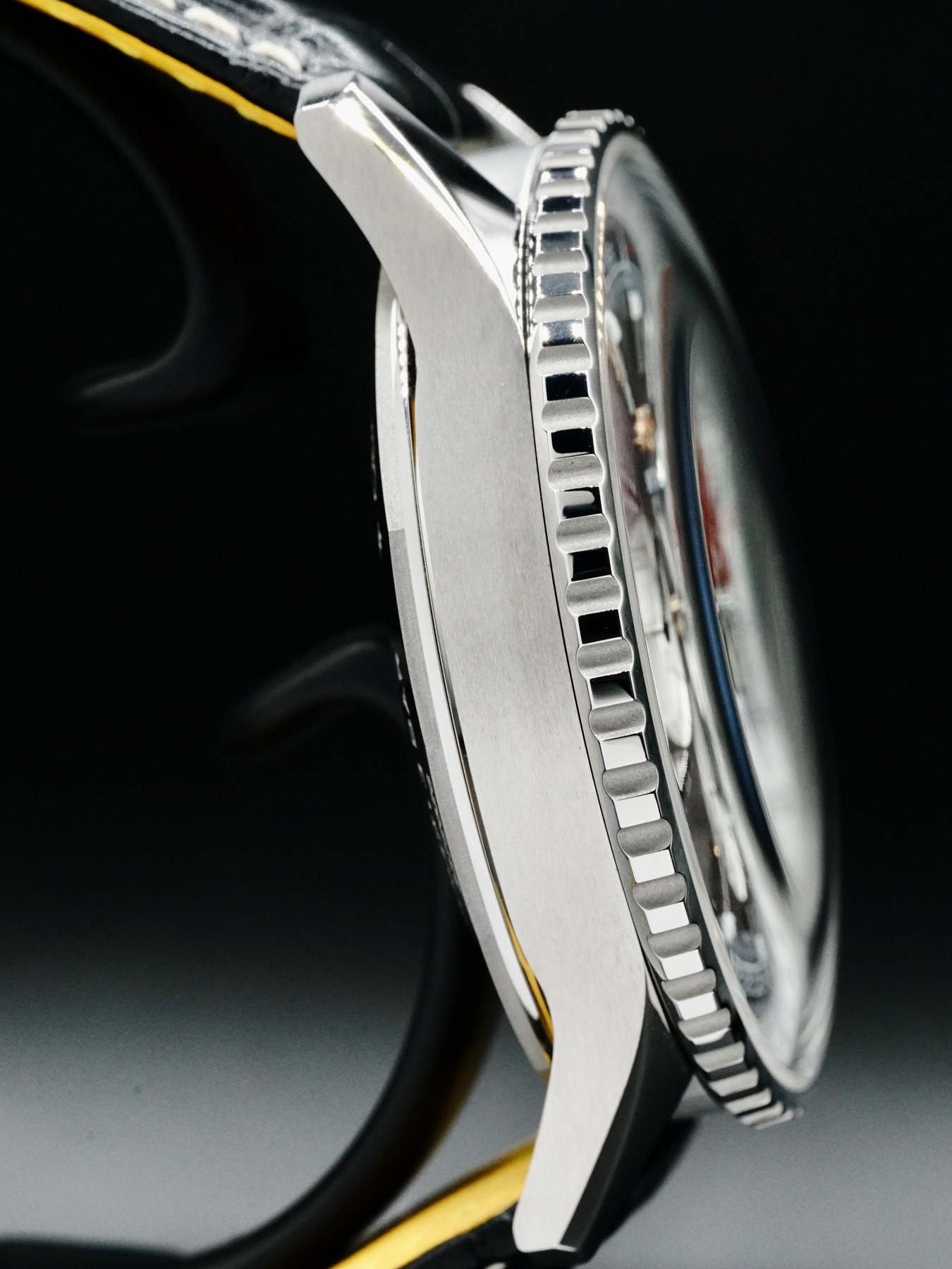 This Breitling Navitimer B01 Chronograph AB0137 features a 46mm steel case on leather strap. This watch also sports a black dial.