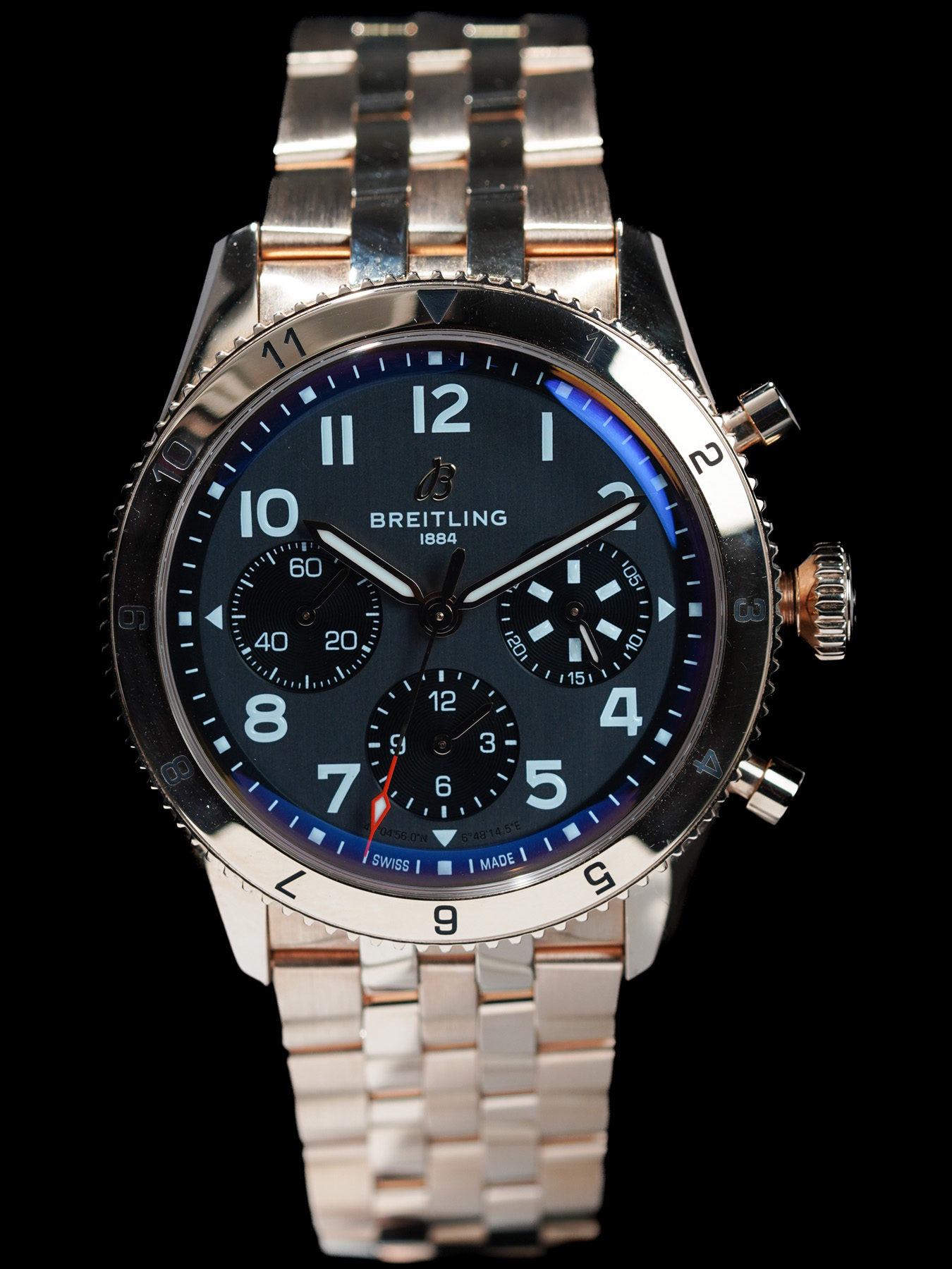 This Breitling R233801A1B1R1 Classic Avi Chronograph P-51 Mustang is in GREAT condition. This watch includes its Original Box, Original Papers and Warranty Card Not Dated. This watch has been fully authenticated and certified by Exquisite Timepieces.