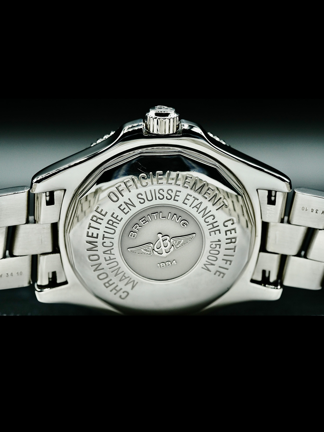 Powered by a mechanical automatic movement. Water resistance up to 1500 meters.