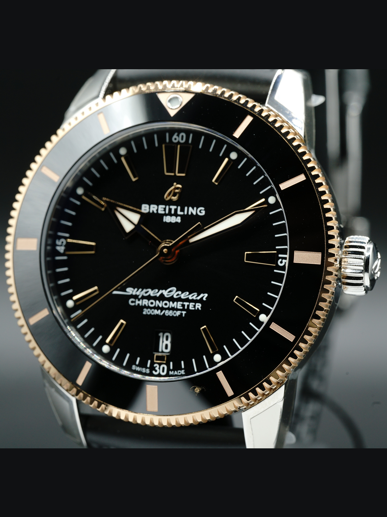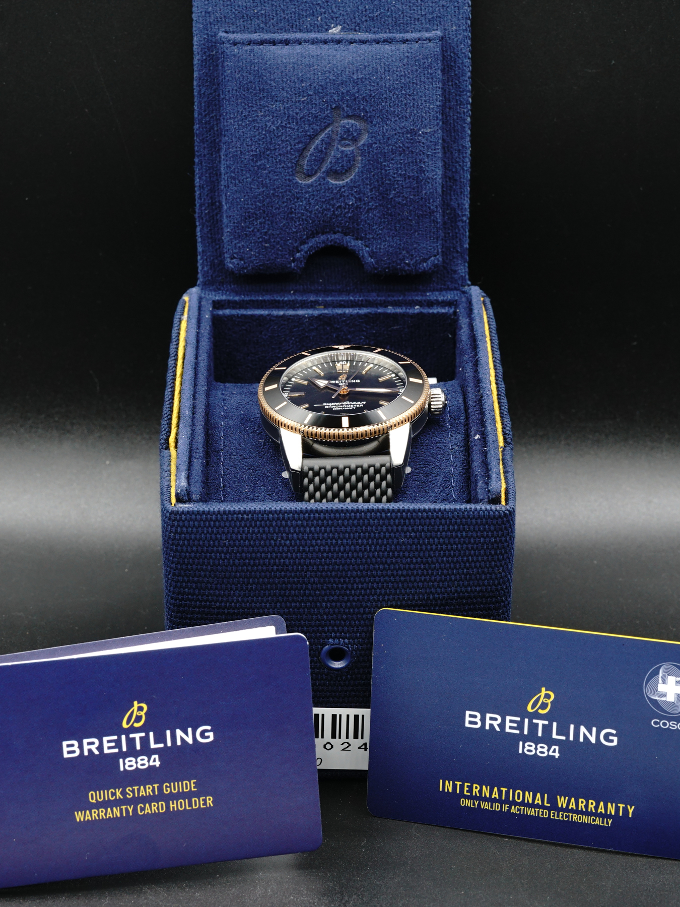 This Breitling Superocean Heritage is in EXCELLENT condition. This watch is sporty and elegant, a true embodiment of style at sea. The Superocean Heritage features iconic triangular-shaped hands as well as a unidirectional bezel with a polished ceramic ring. This watch includes its original box, quick start guide, and international warranty.