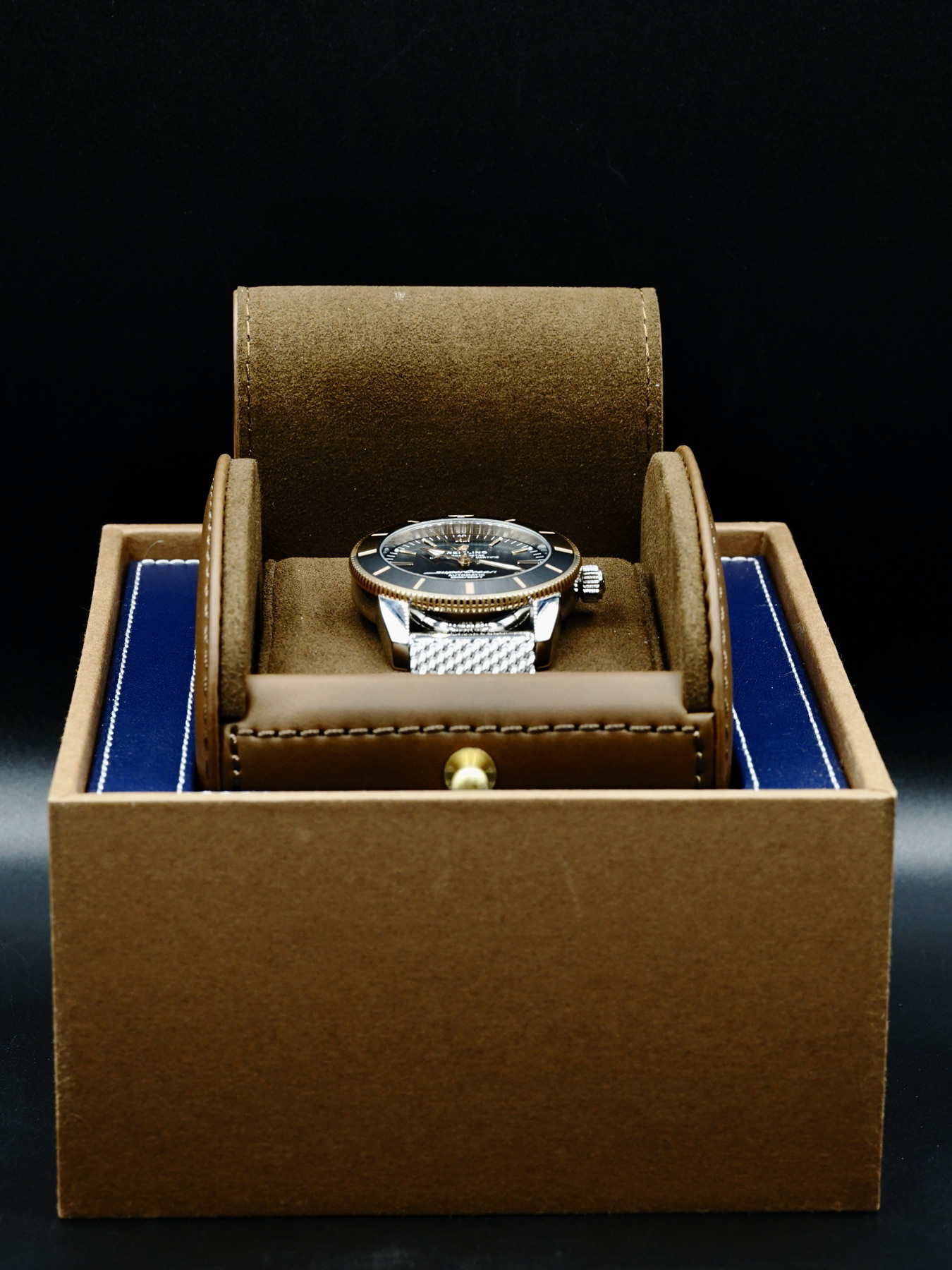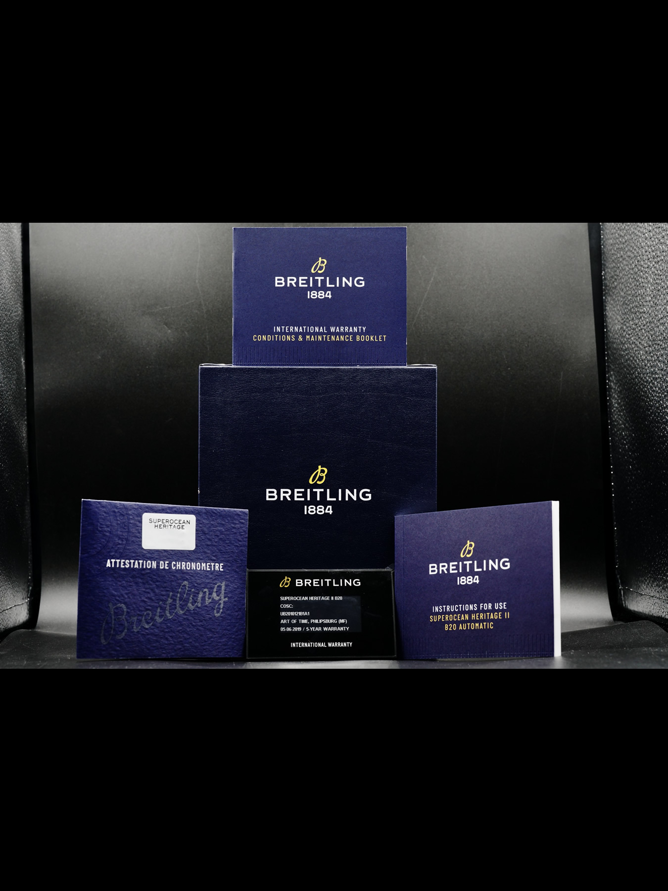 This Breitling Superocean Heritage II UB2010121B1A1 is in EXCELLENT condition. This watch includes its original box, instruction manual, conditions & maintenance booklet, Attestation De Chronometre, and international warranty dated for May 2019.