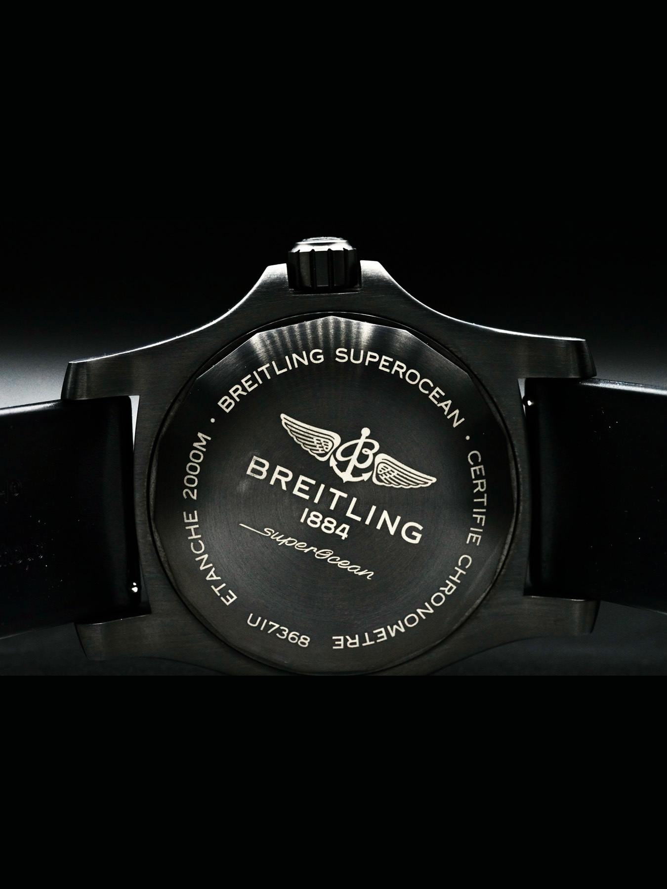 Automatic movement powered by Breitling Calibre 17 with a power reserve of approximately 38 hours. Water resistance up to 2,000 meters.
