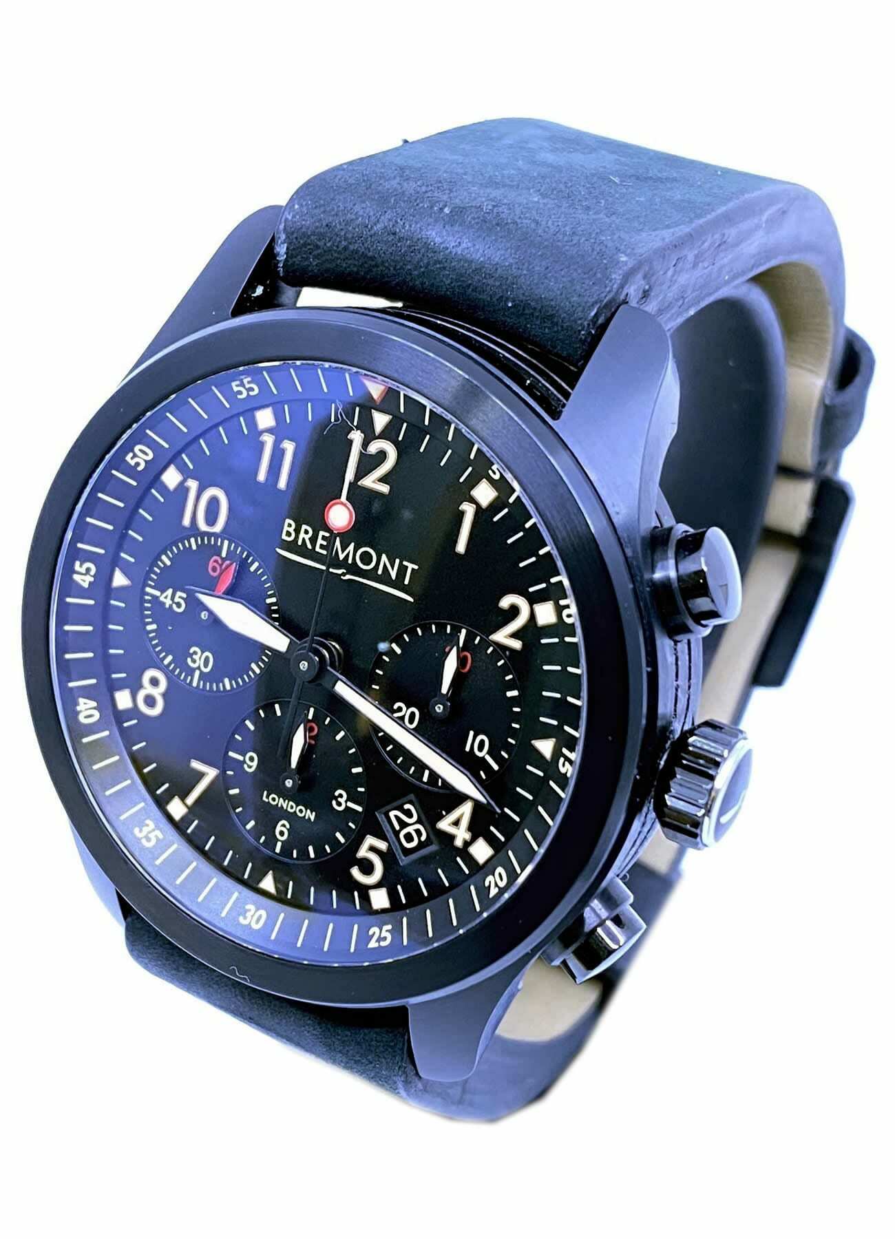 Scratch resistant DLC treated stainless steel Bremont Trip-Tick® construction case.
